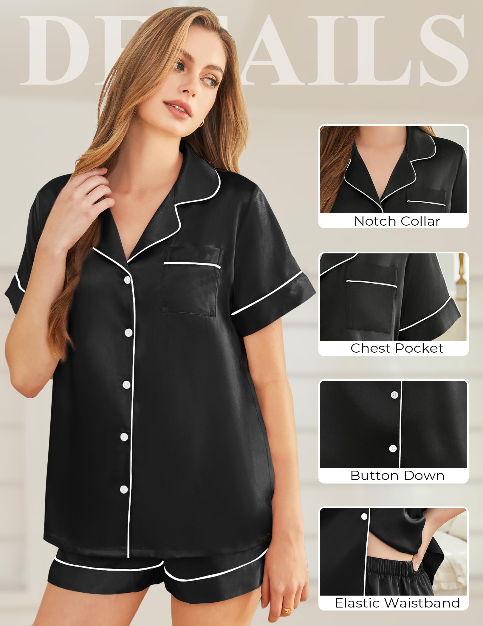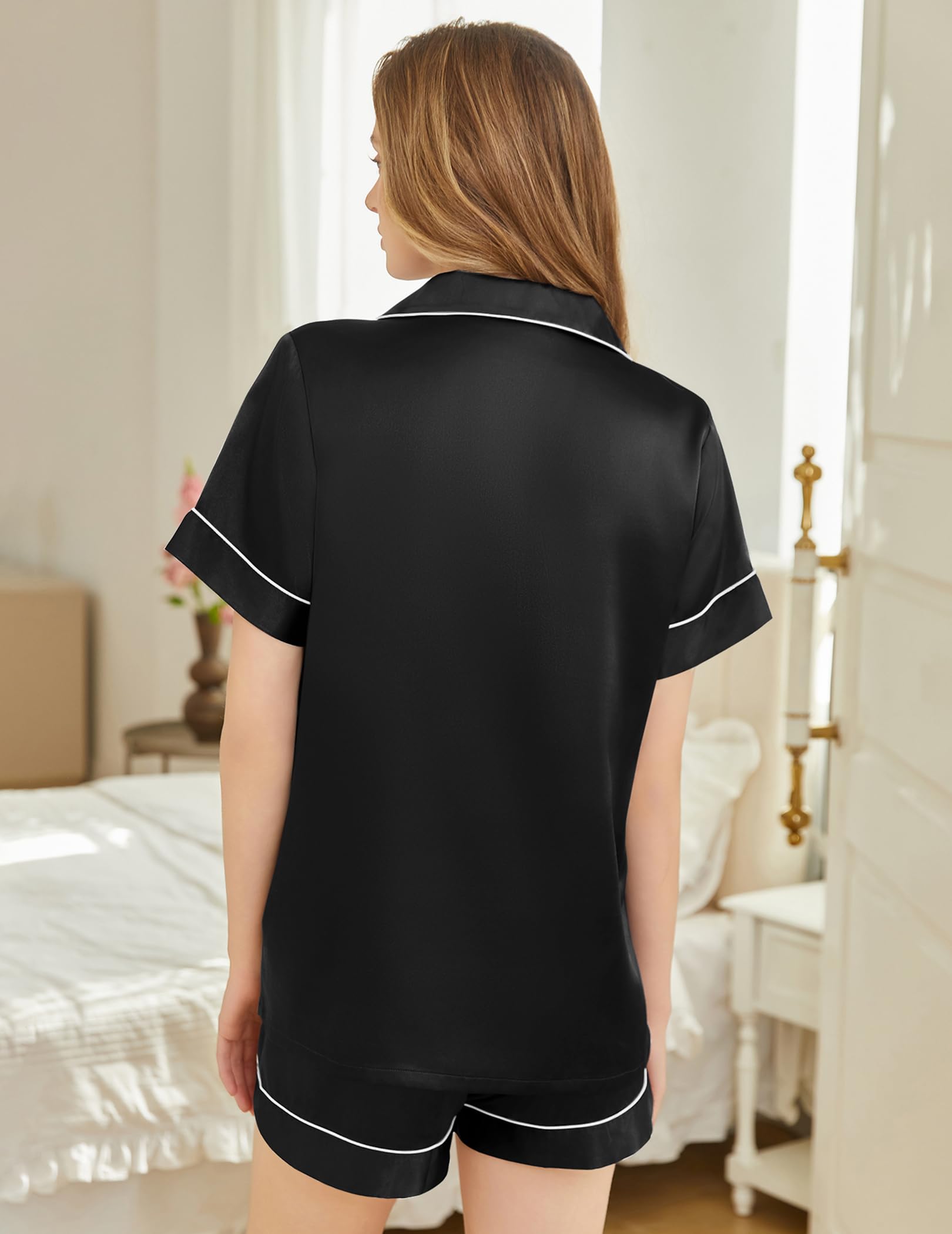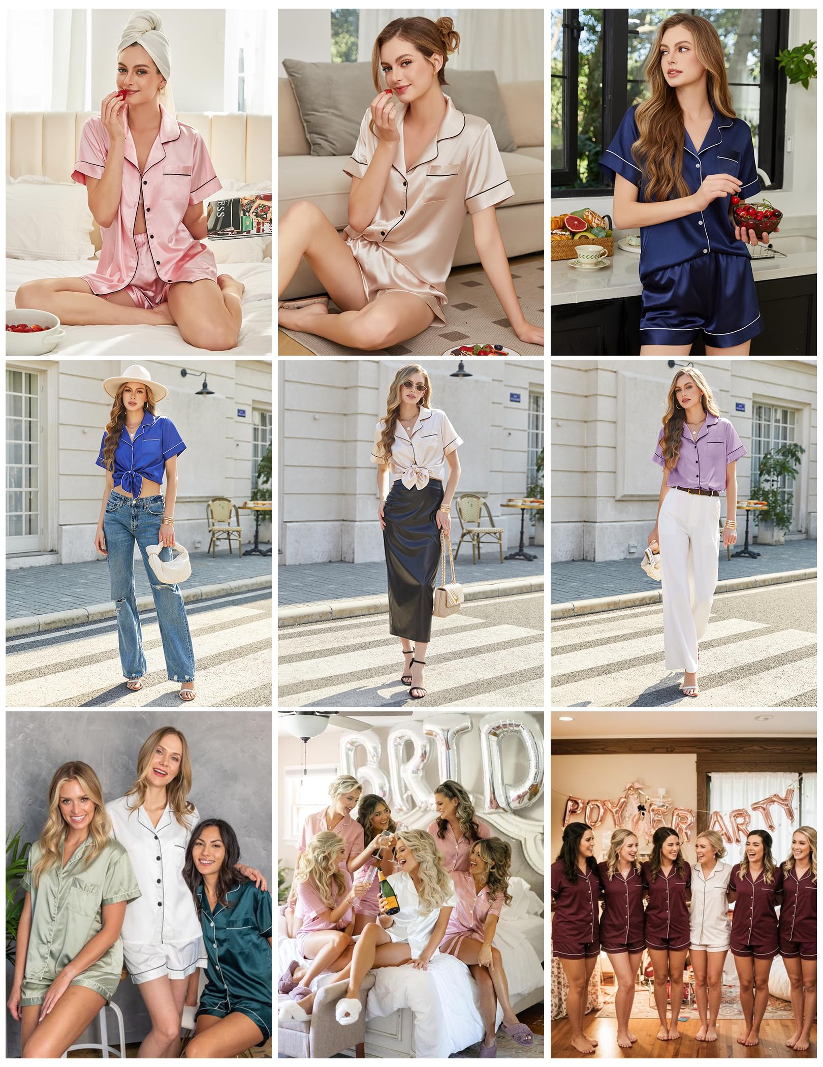 Fit Occasion: Silk satin pajamas set for women are ultra cozy for leisure wearing and easy to match. Perfect for pajama party, girls' day, bridal sleepwear, indoor, living room, bedroom, hotel, vacation, travel, school and fun family moments. The stylish short sleeve loungewear top can also be paired with blazers, jeans and skirts, elevating your office/casual/daily looks.