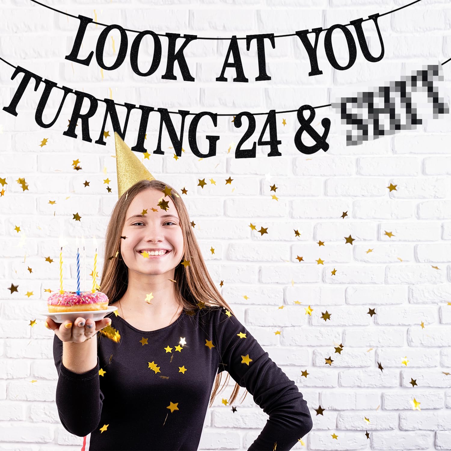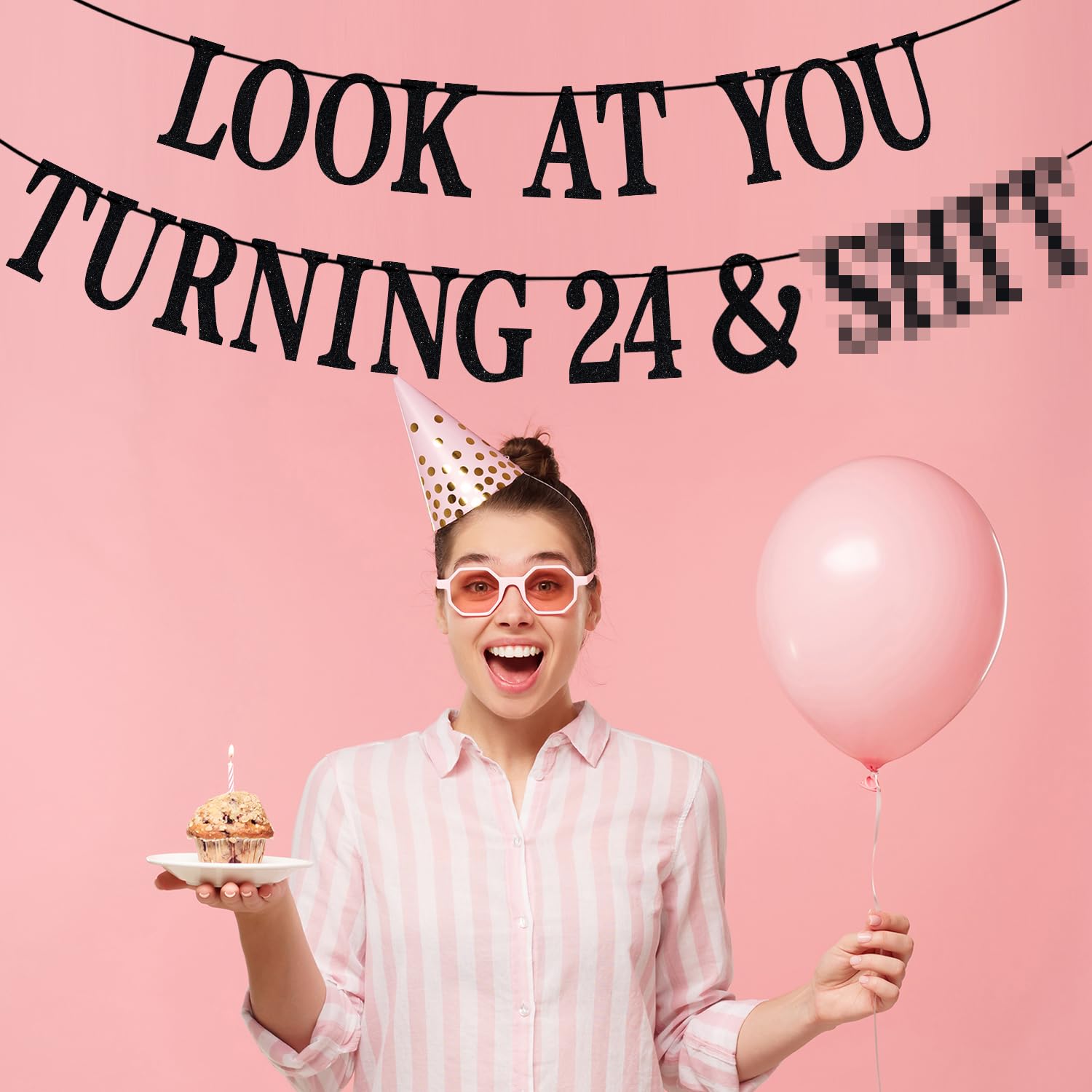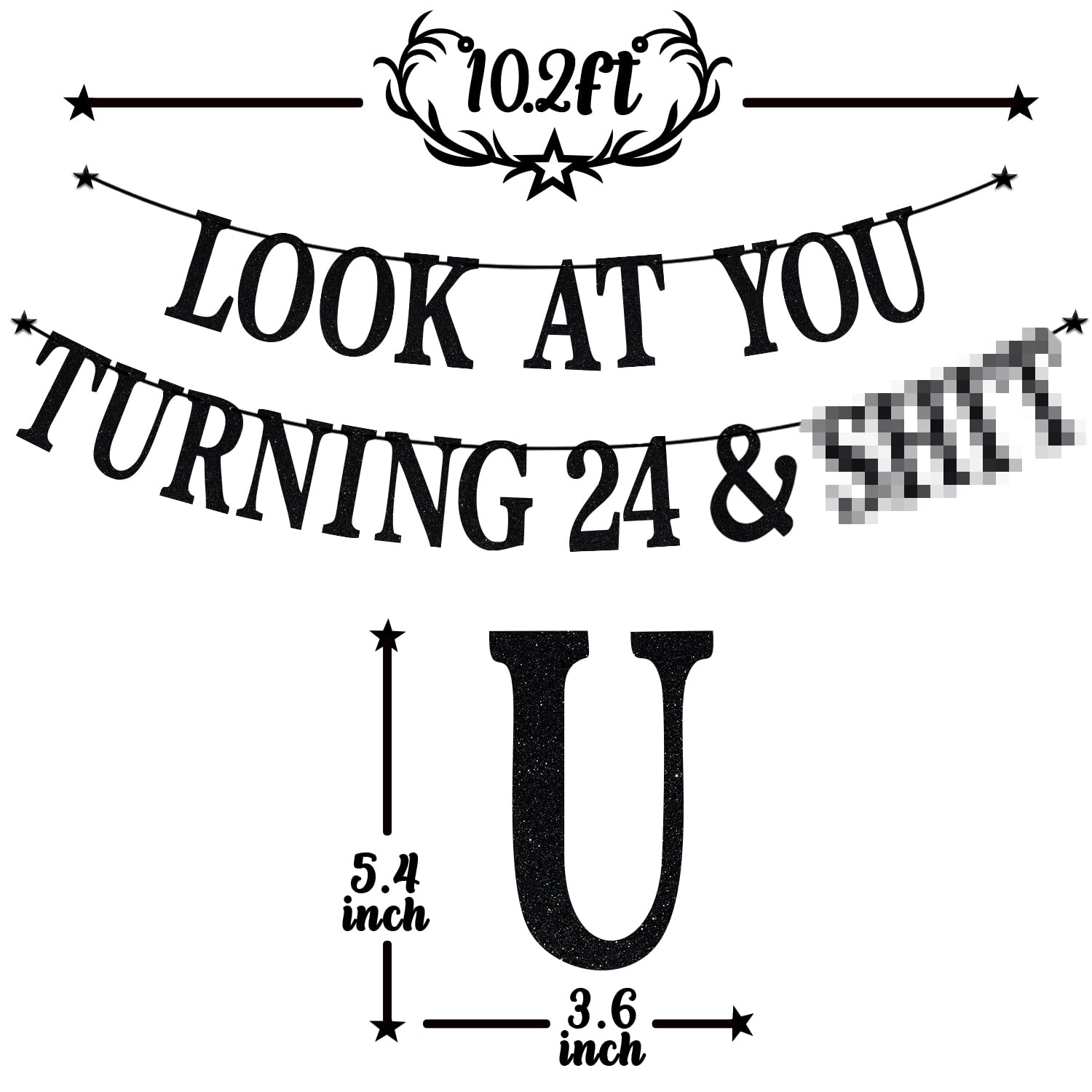 Received included: Letter cards spelling the phrase "Look at You Turning 24 & Sh*t". Awesome decorations: It is very suitable for the 24th Birthday party. Special party decorations can add an enjoyable and active atmosphere to these scenes, leaving a happy and unforgettable memory. High quality: Banners are made of glitter premium cardpaper. They are rigid and reusable. Easy to DIY: The card and the rope are separate, you only need to spend a little time to assemble. Choose us and believe us: We support the concept of customer first and product first. If the quality or damage occurs during transportation, we will solve it.