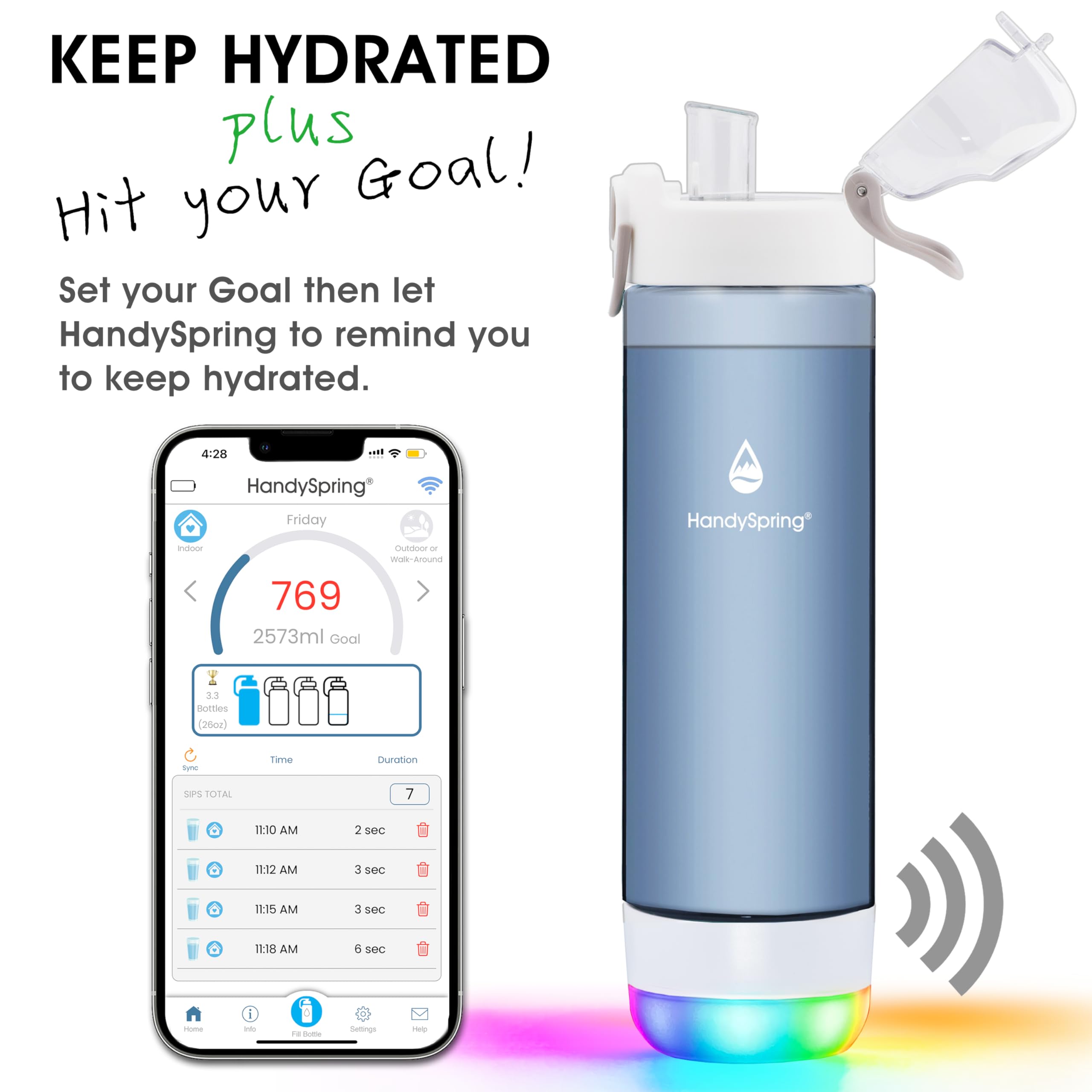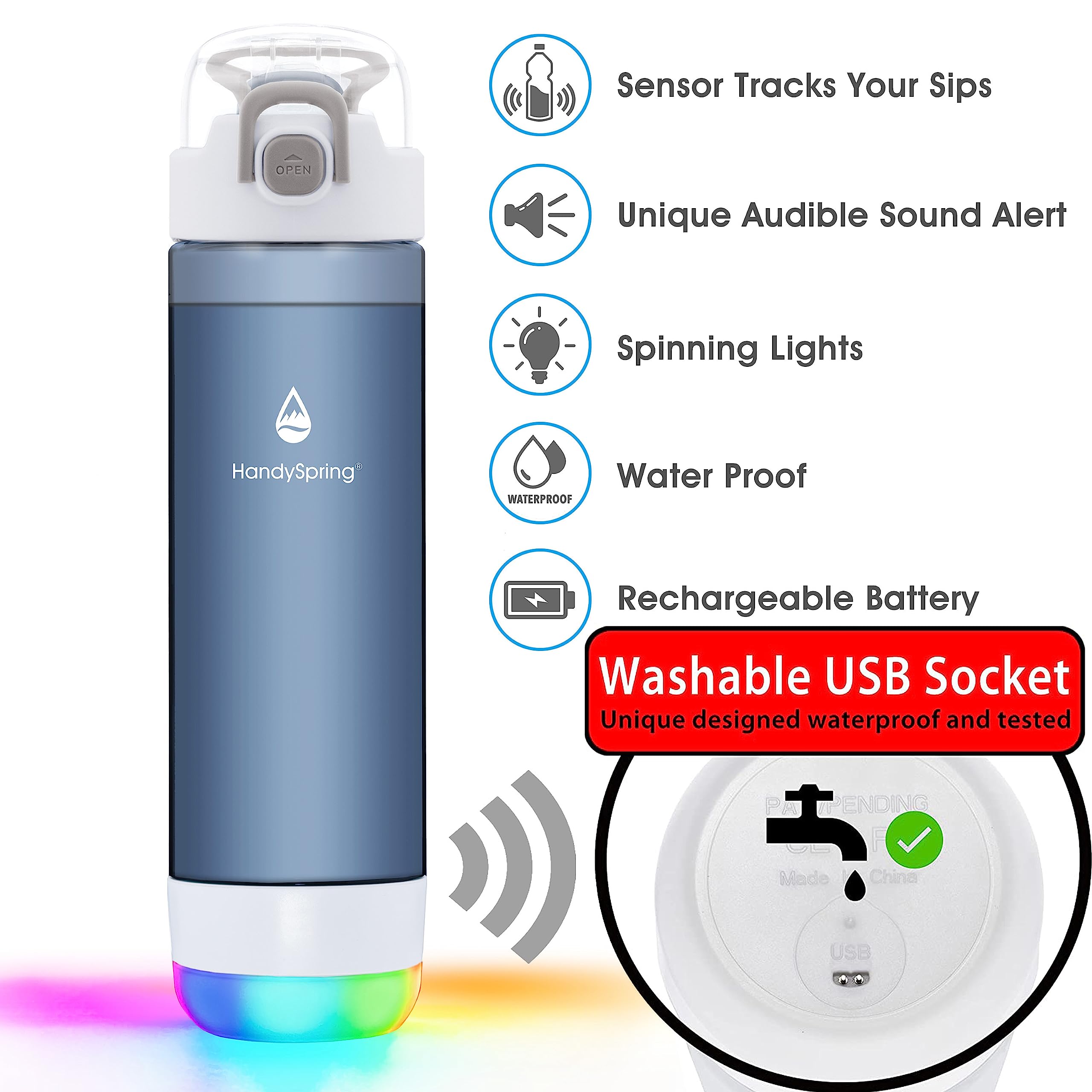 ✅SET UP INSTANTLY HYDRATION BOTTLE WITH REMINDER: You can now get on with your daily tasks without the worry of dehydrating with our hydration tracking water bottle that reminds you to drink; Featuring a flip top, incorporated straw with a regular size mouth, and convenient hanger, this smart water bottle with app tracker will set the sipping intervals, calculate the sips, and automatically remind you to hydrate, based on your personal goals. It doesn't measure how much water did you drink.