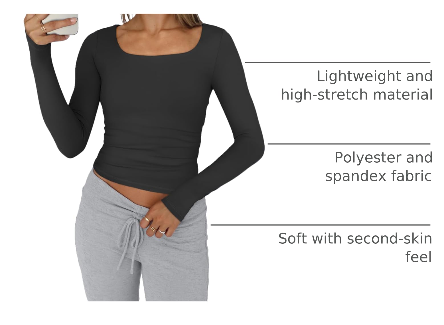 Soft Material: Crafted from a blend of 88% polyester and 12% spandex, this long-sleeve top is lightweight, ultra-soft, and highly stretchable. It offers a second-skin feel, making it an ideal layering piece or standalone top