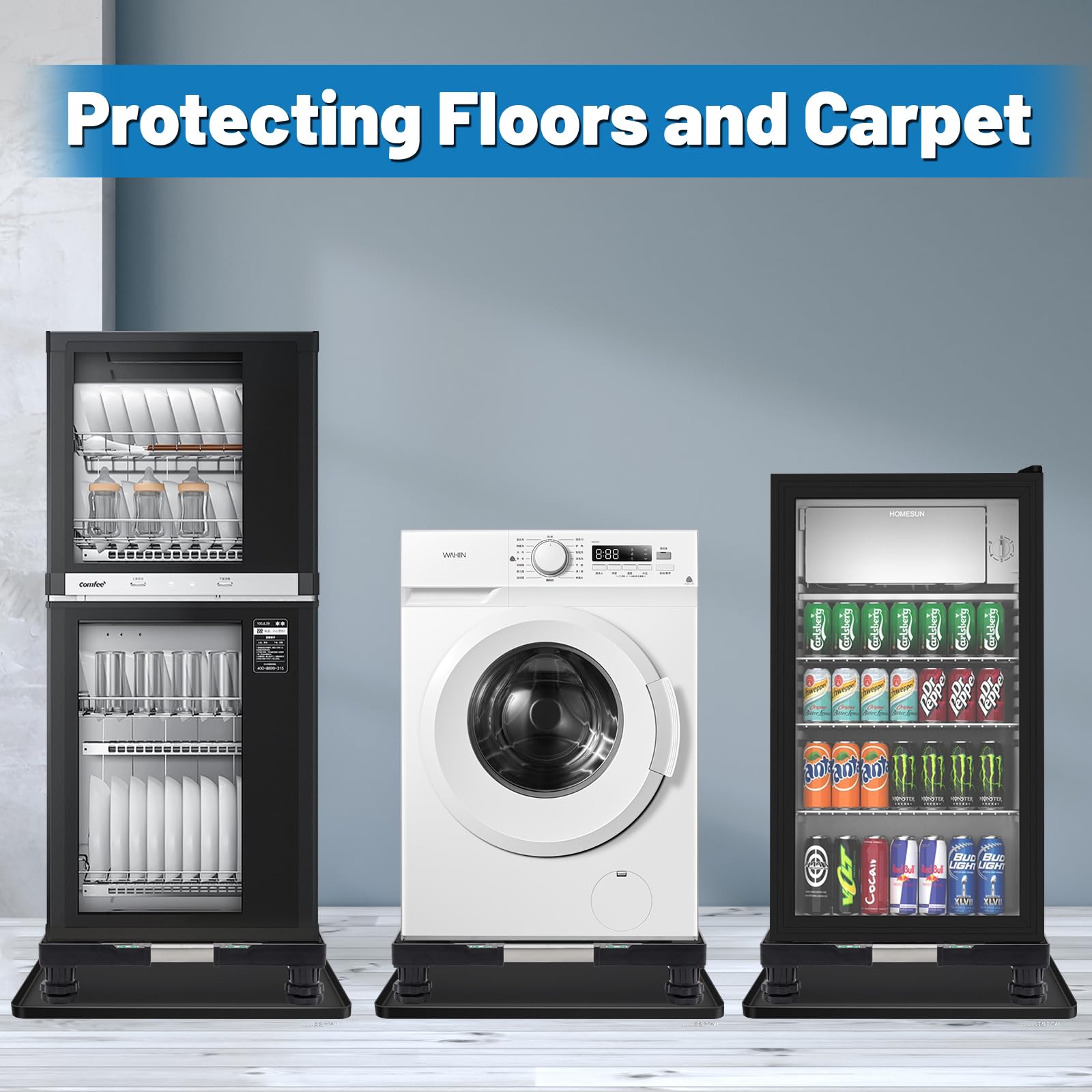 GREAT FAMILY HELPER: Worry about dripping water or potential danger when put the fridge on carpets, annoy by the distance of dryer to destination? Nefish mobile furniture stand base can help you solve these problem, make home life easier