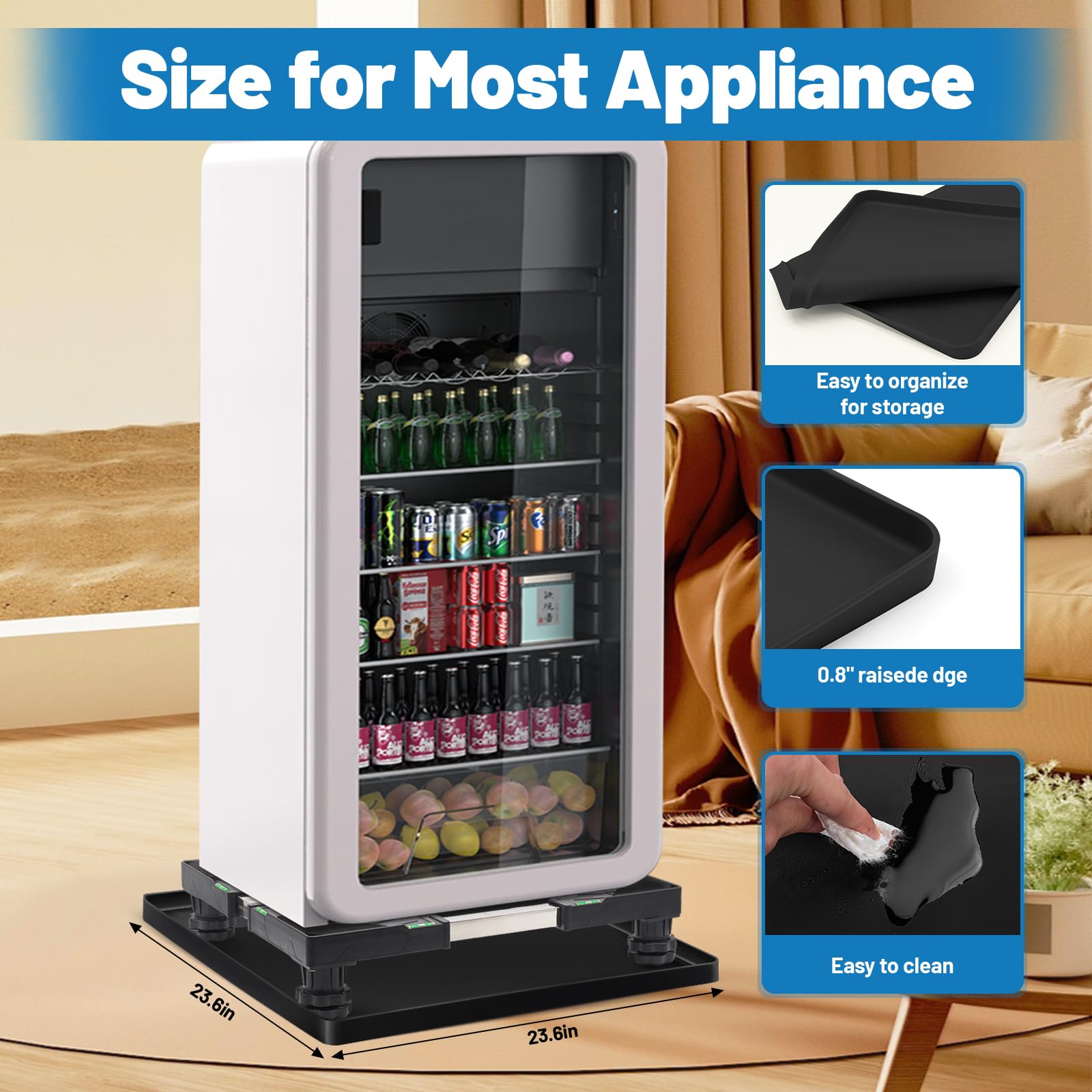 No More Worrying about Potential Leaks: When an appliance leaks water for some reason, it can be troublesome to not get home in time to catch it. Nefish mini fridge mat designed with raised edge all the way around the four sides which will keep any spills or liquid from leaking off the silicone mat and on to your hardwood floor. No more worry about the condensation or a little spill that goes unnoticed