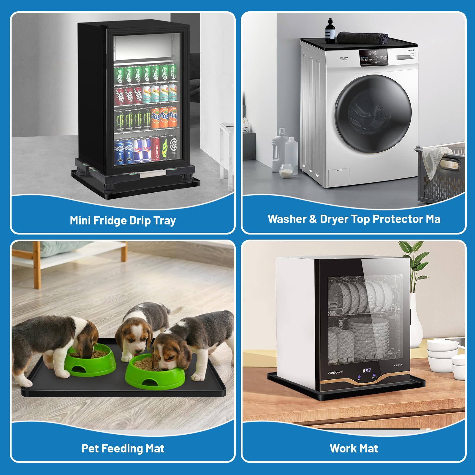 Wide Range of Application: Nefish drip tray is made of premium silicone material, anti-slip and comfortable to touch, long lasting and easy to clean. The size is 23.6" X 23.6" , suitable for various occasions such as bedroom(storage mat), kitchen (under sink mat), living room(pet feeding mat), laundry room(washer dryer top protector mat) and so on