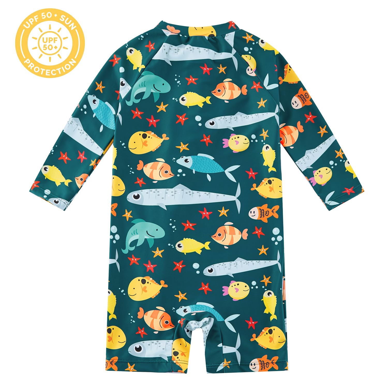 UPF 50+ SUN PROTECTION: This baby swimsuit is rated UPF 50+ sun protection, which blocks out 98% of the sun's harsh UVA and UVB rays. You'll have peace of mind knowing baby's delicate skin is protected from sunburns