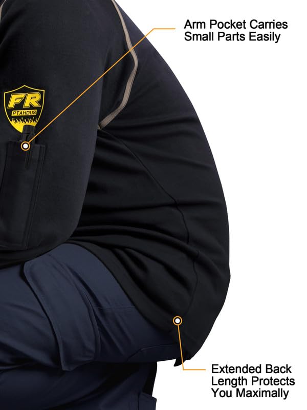 Meet Industry Security Compliances: Meets HRC 2, NFPA 2112 and NFPA 70E ATPV 15 cal/cm2 compliances. Ptahdus FR shirts for men can plummet burned skin risk and provide valuable time to escape when get exposed in unsafe environment