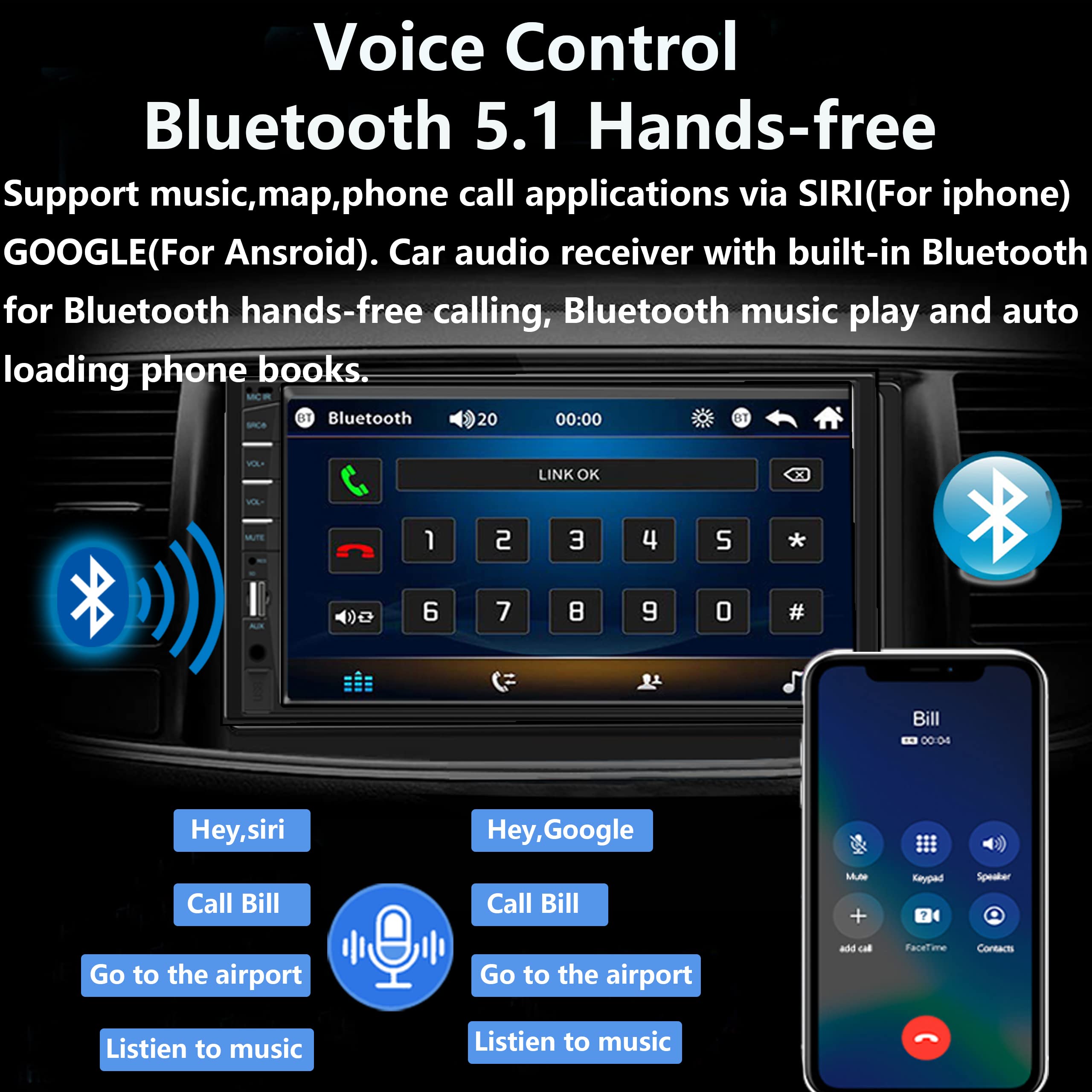 【Car Stereo with Carplay & Android Auto】This car stereo double din radio compatible with Apple Carplay and Android Auto which allows you to get voice control, Siri/Google assistant help you access the your phone functions including calls, map navigation, email, music, messages, etc. while you stay focused on the road. With voice Assistant, help you focus on the road and have fun along the way.