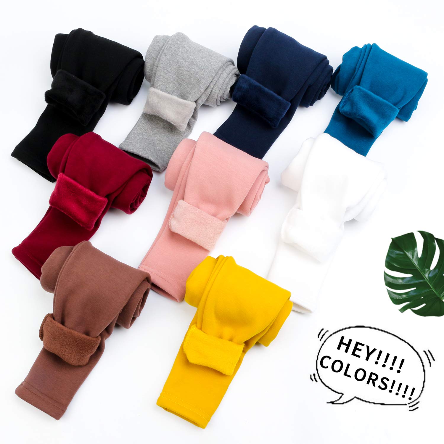 Classic color of fleece leggings like black, white, navy, gray, blue, pink and yellow etc,available for your choice, basic color girls winter leggings to wear alone or underdress for daily wear, school, active or outdoor sports