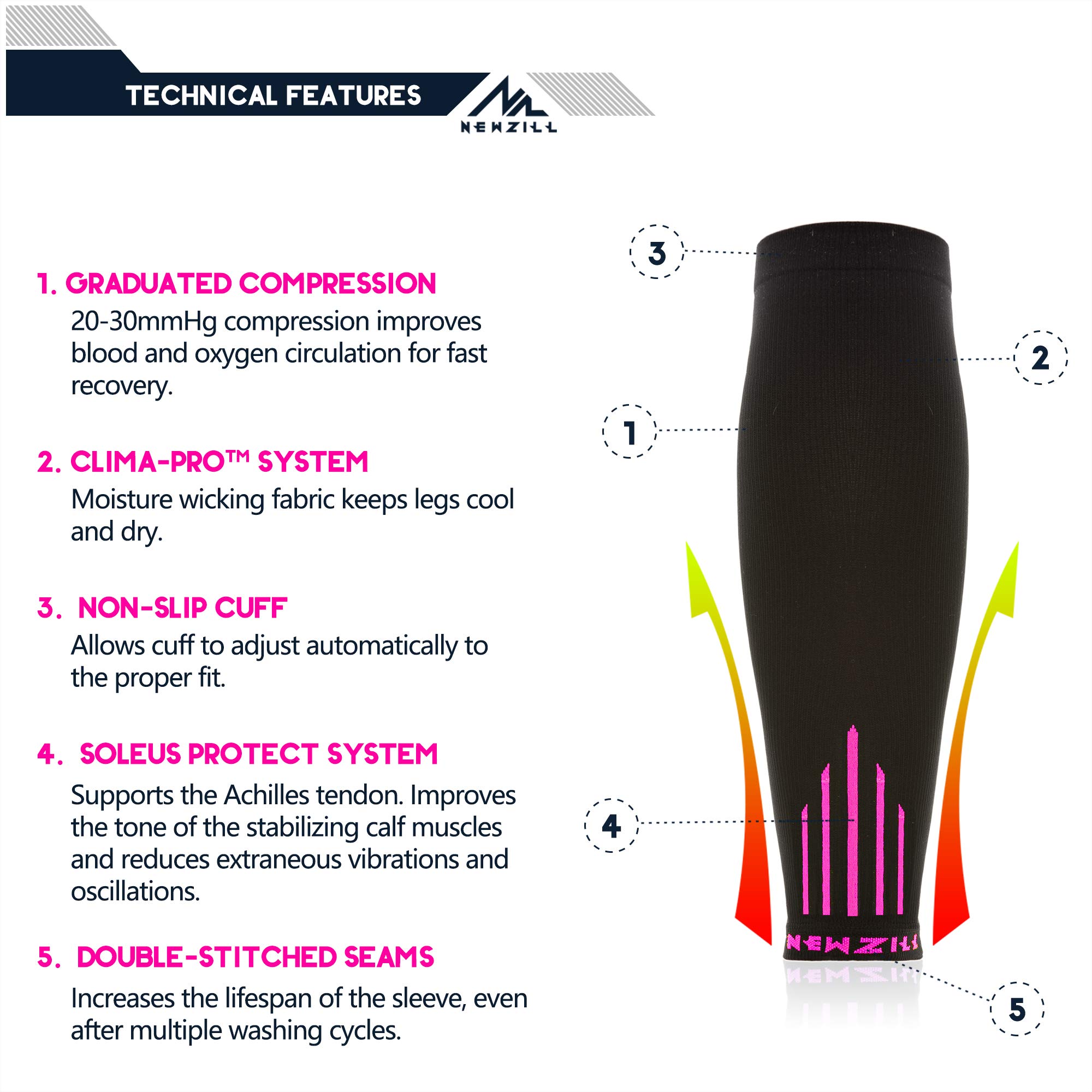 【SUPPORT YOUR LEGS】NEWZILL leg sleeves provide targeted support and stretch where needed. Whether you're dealing with Aching Calves, Leg Cramps, Restless Legs, Shin Splints, Swollen Feet, Swollen Legs, Edema, Varicose Veins, Pregnancy, Thrombosis, POTS. You'll notice the improvement and wonder why you didn't find them sooner! Try them today—train harder, and feel stronger!