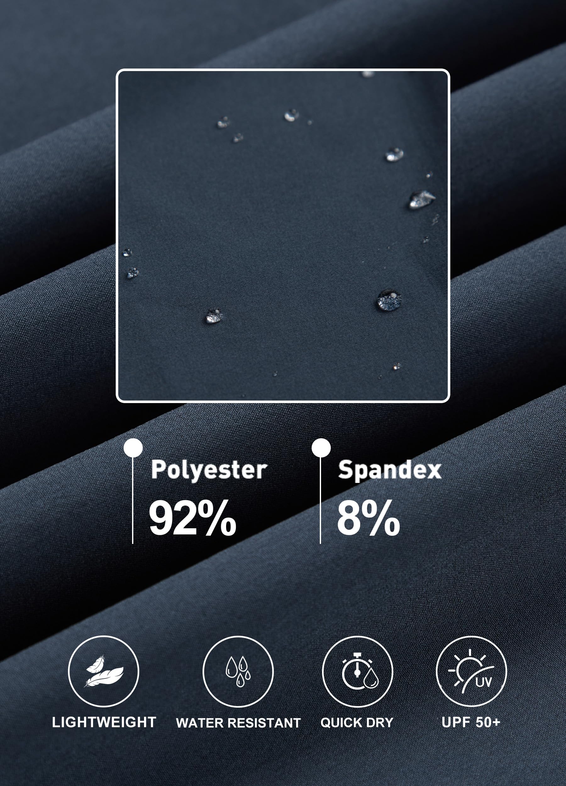 The fabric is super lightweight, quick-drying, breathable, and water-resistant, ensuring all-day comfort and cool during hiking, jogging, or daily activities