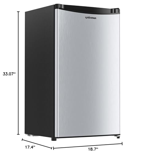 Single-Door: This mini fridge measures 18.7’’*17.4’’*33.1’’(W*D*H) and has 3.2 Cu.ft(90.6 L) capacity including freezer. The single door refrigerator design is convenient and space efficient. While being able to grab ice cubes and drinks at one step, this single-door fridge has more capacity compares to those double-door fridges with the same size. The mini fridge storage is greatly utilized, occupies a little space, making it perfect for dorms, offices, bedrooms, RV cars and garages