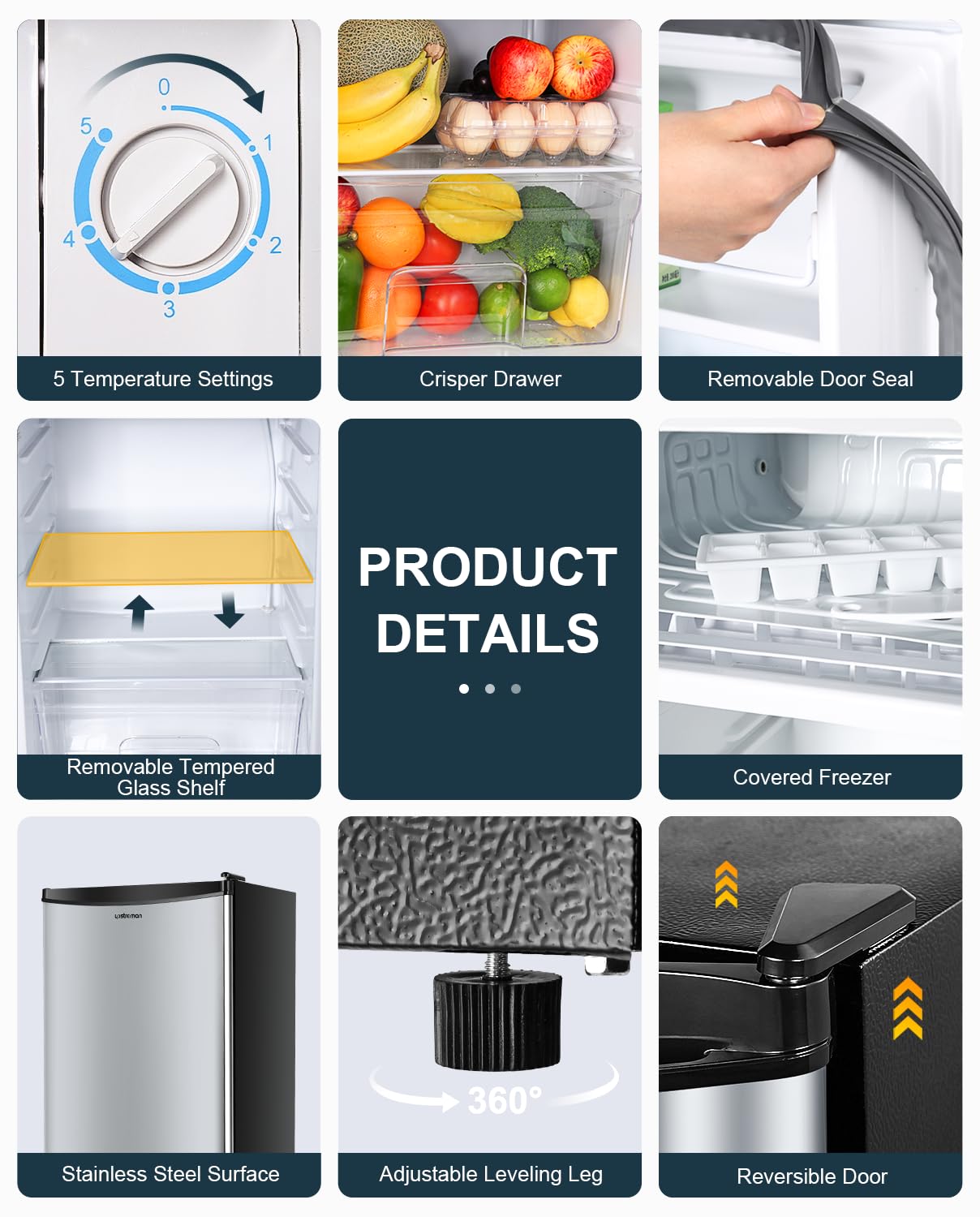 Accessories & Services: 1 Upstreman 3.2 Cu.ft mini fridge with freezer, 2 removable shelves, 1 crisper drawer, 1 ice tray, 1 defrost tool and worry-free customer service