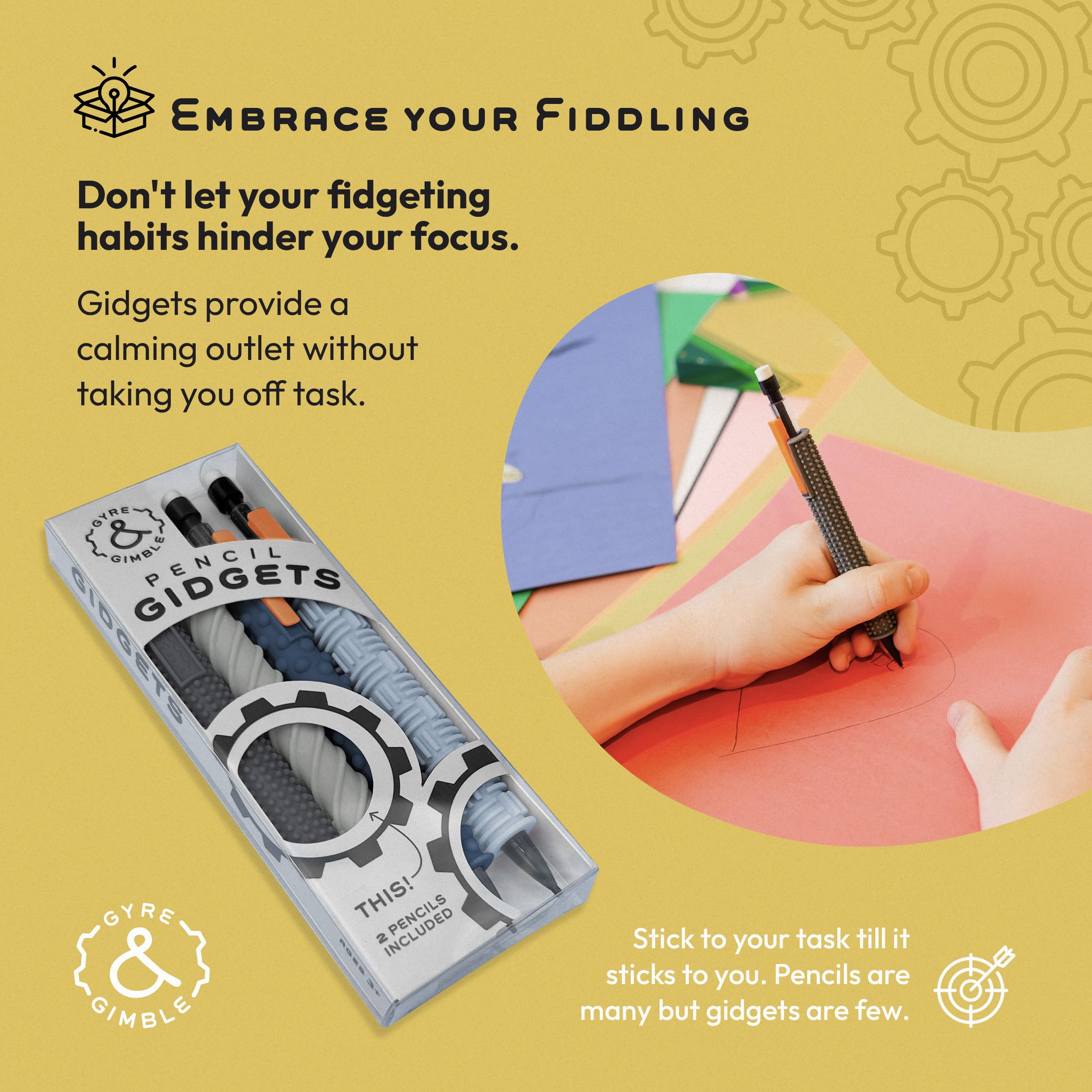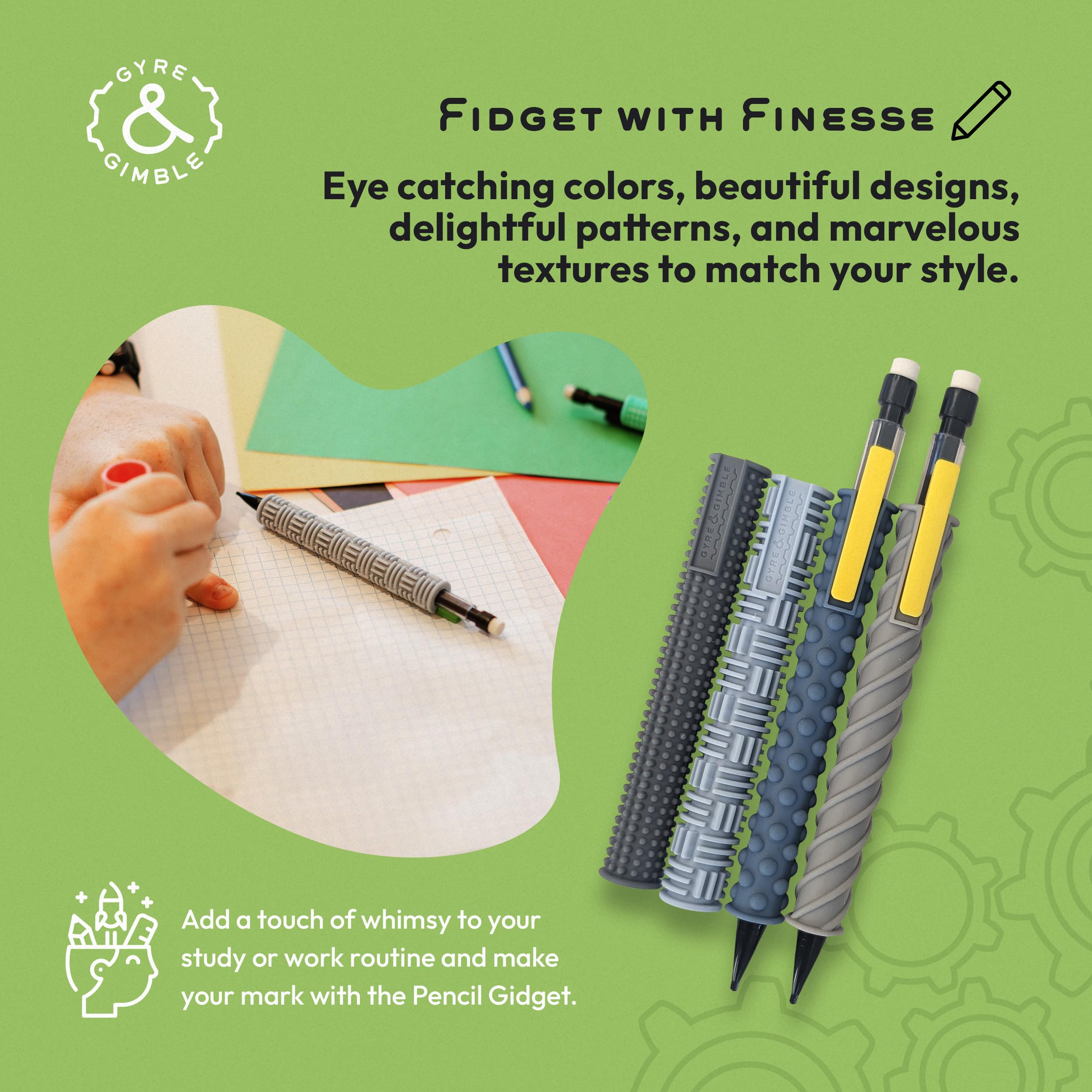 MECHANICAL PENCIL TRANSFORMATION: Our gidgets slide effortlessly onto most mechanical pencils and pens, providing a comfortable, satisfying grip and sensory stress relief. *Does not fit on wooden pencils.