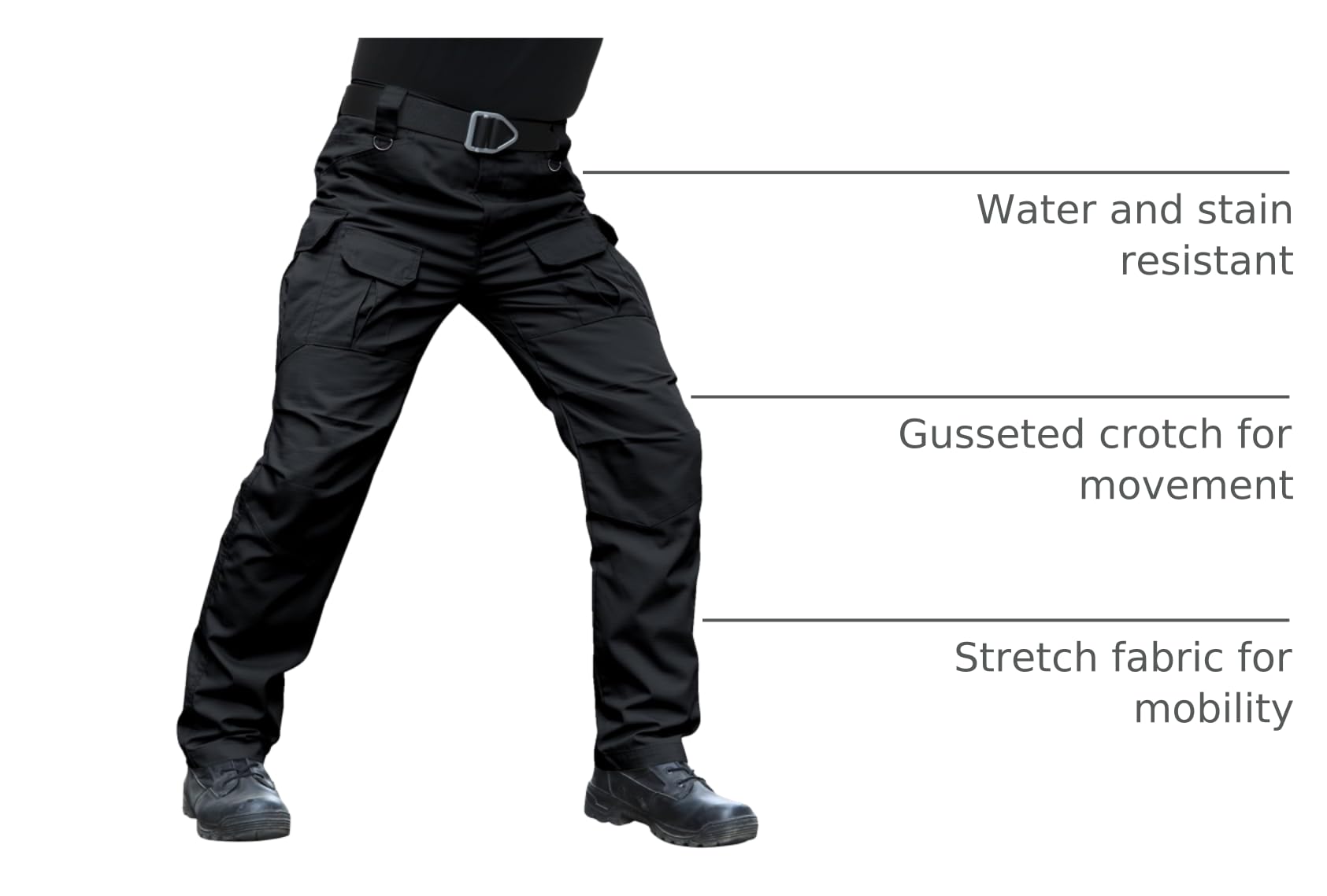 [Tactical Multi-pockets] : Total 10 Multi-purpose cargo pockets for various tools and equipment. Two front slant pockets with two small internal pockets; Two large rear pockets are fitted on both sides of the hip circumference; Two large flap pockets provide ample storage to carrying all your essential equipment; Two small flap pockets for phone and wallet. These men's hiking pants have an extremely deep tailored fit that is not only functional but also stylish.