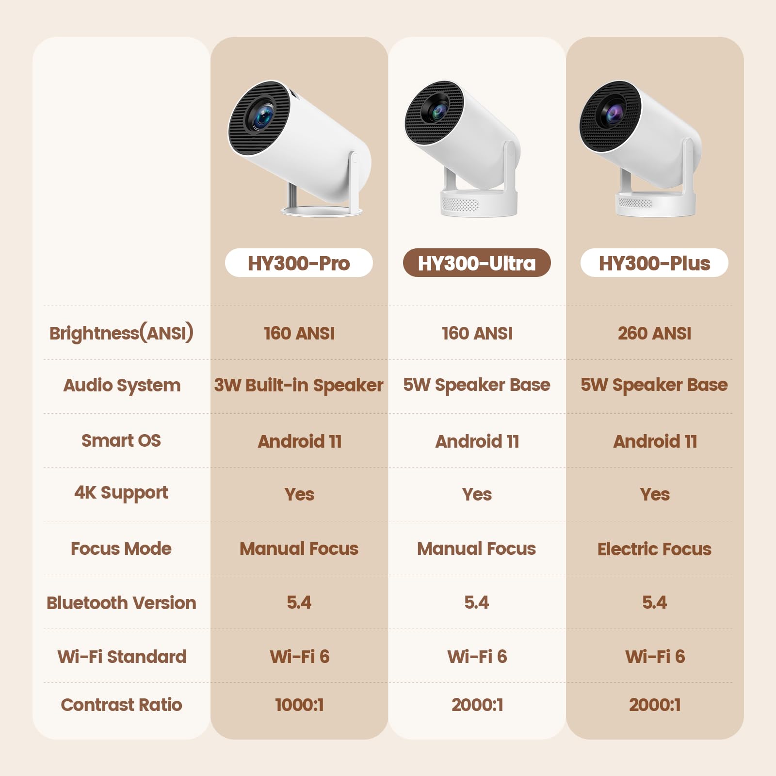 【Enhanced Speakers & Connectivity】Features WiFi 6 and Bluetooth 5.2 for seamless connections (compatible with 2.4G/5G networks). This compact yet powerful smart projector comes with 360° surround sound speakers, offering an immersive home theater experience.