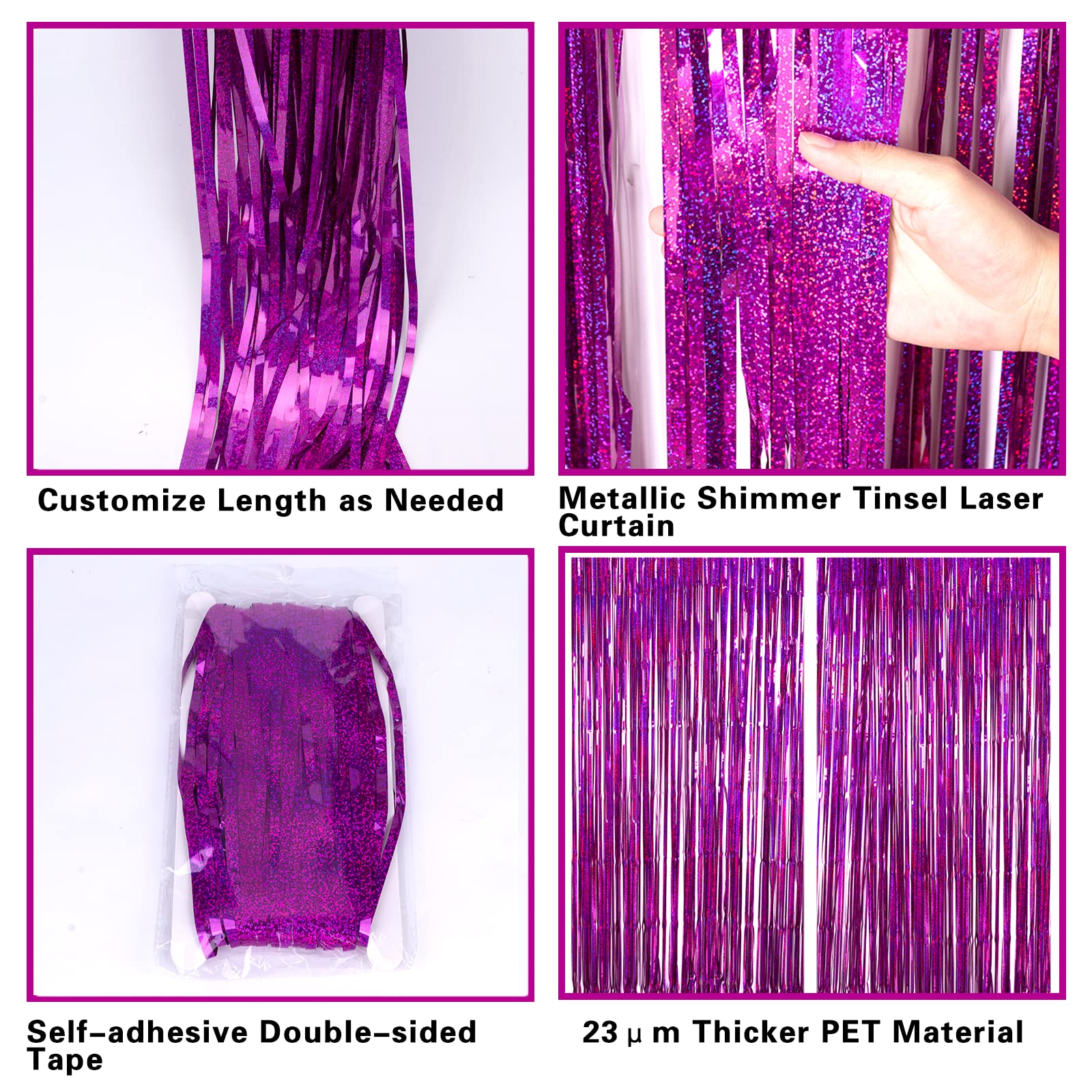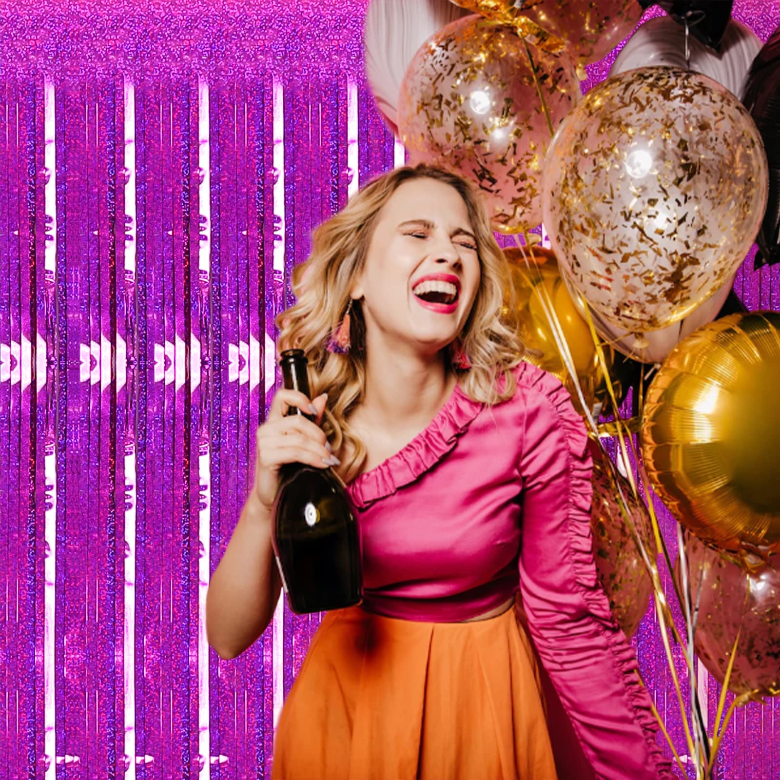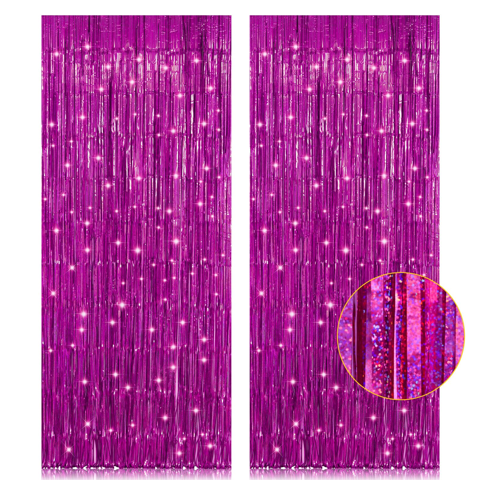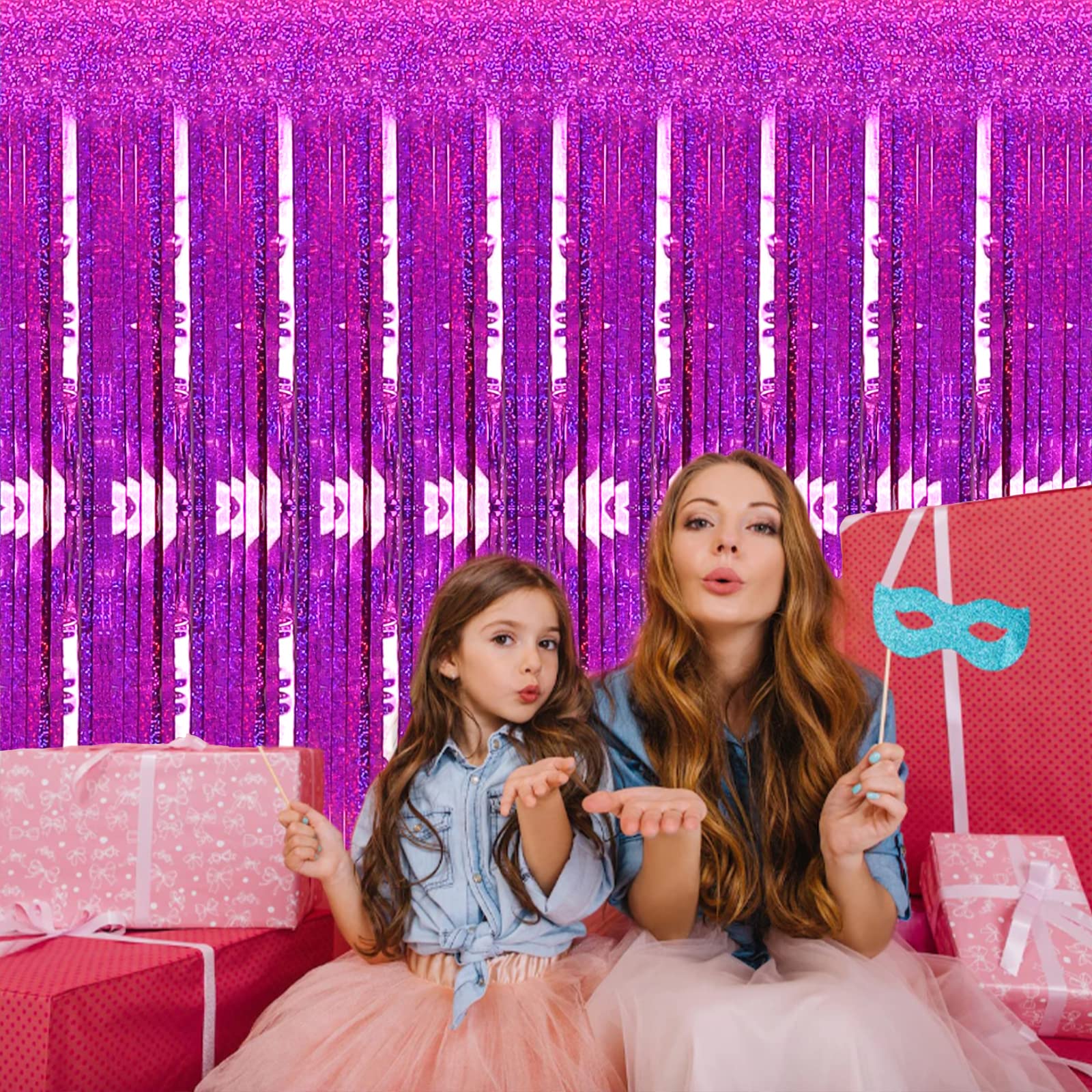 【Perfect Size & Latest Laser Technology】You will receive 2 Pack hot pink metallic tinsel curtains, each of 3.2 x 8.2 ft. Ideal hanging decorations for window, wall curtaion, ceiling or coverage a wall fully.