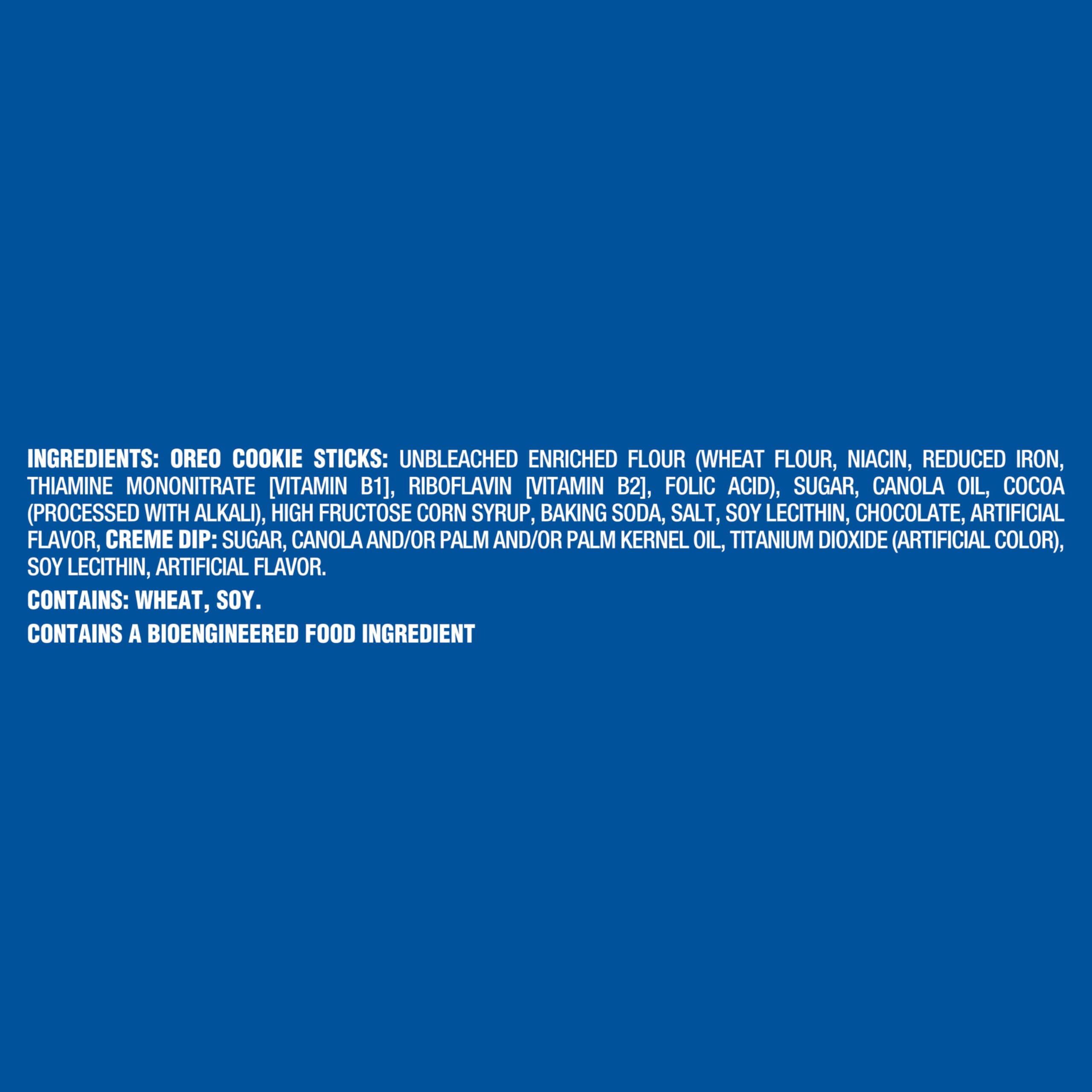 Handi-Snacks OREO Cookie Sticks 'N Creme Dip Snack Packs pair crunchy chocolate cookie sticks with rich OREO creme dip to make the perfect sweet snack. These delicious snack packs take classic OREO cookies and creme flavor and transform it into a fun, dippable treat. Toss one of these packs into your lunchbox as a tasty dessert, or stash them in your travel pack as a fun road trip treat. Each individually wrapped snack pack features handy compartments for the cookie sticks and OREO creme dip to keep everything in place, whether you're snacking at home, work, school or on the road.