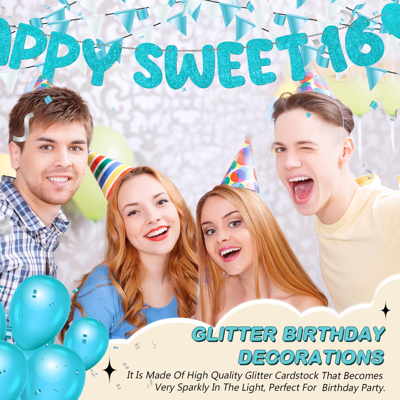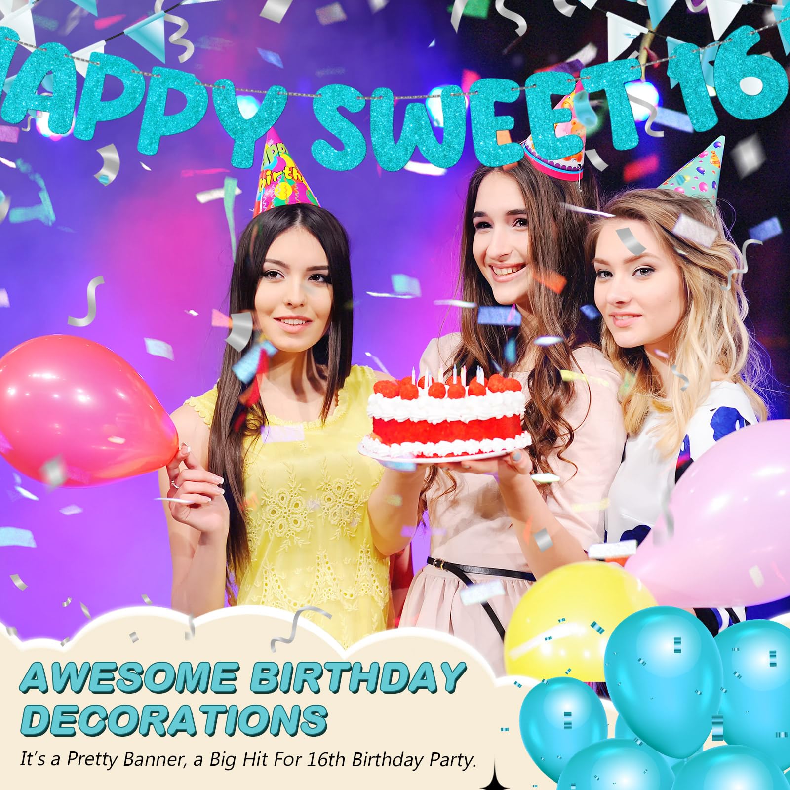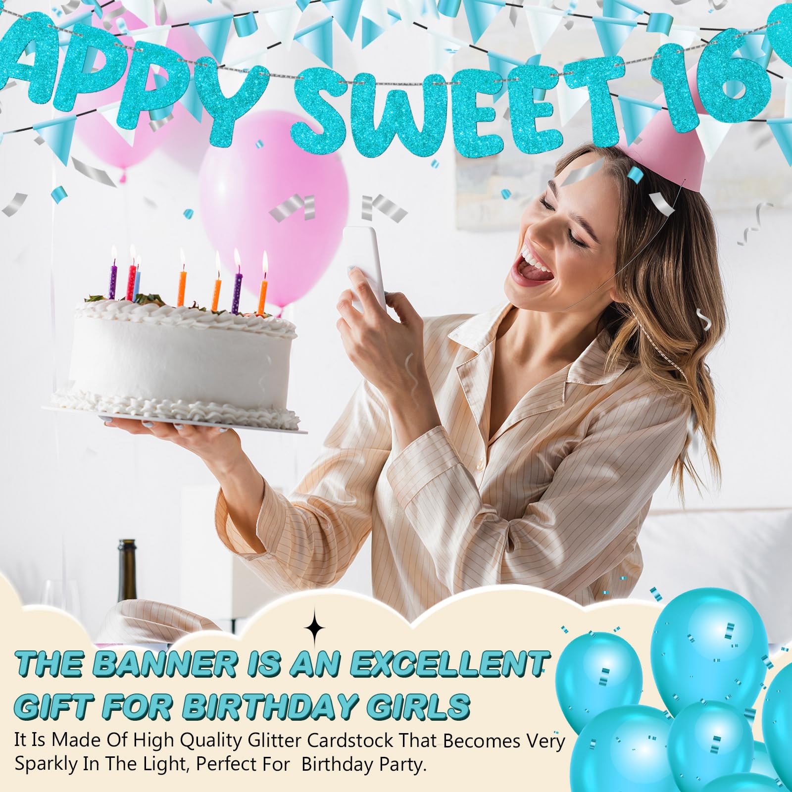 Exquisite Sky Blue Color: the tastefully chosen sky blue color adds a balance of elegance and glam to your party decorations; Happy sweet 16 birthday banner symbolizes celebration, lending a charm to the birthday event; Its sophisticated color matches well with various party themes, leaving the guests in awe and significantly enhancing the celebratory atmosphere