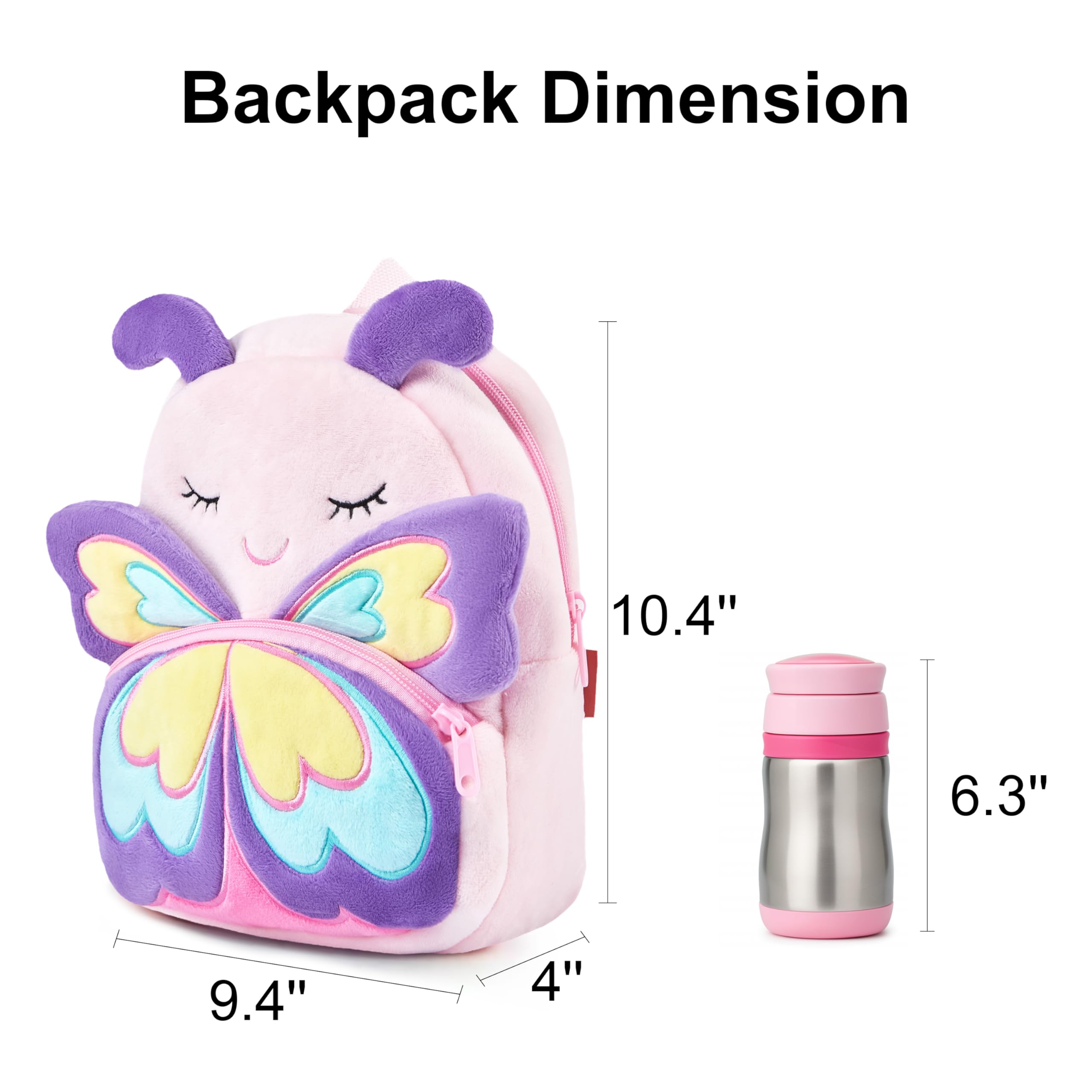 Size: Toddler Bag is 24*10.5*26.5 cm(9.4*4*10.4 inches) in length*width*height; Toddler bag is suitable for baby girl and boy of 2-6 years
