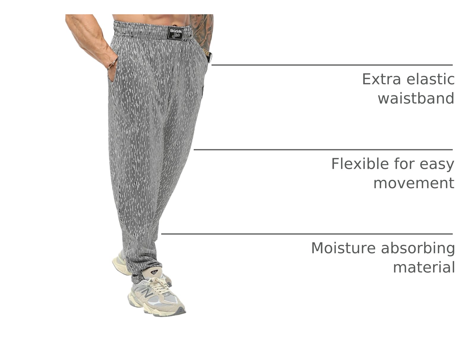 CUT STYLE & FORM - These trousers are produced with a wider cut than normal trousers and sweatpants. It is produced for large and muscular body types with its wide leg and hip cut. Wide hip and leg cuts taper downwards. The trousers that look draped in thin body types will be regular in muscular or large body types. It is suitable for people with large body with its above normal dimensions.