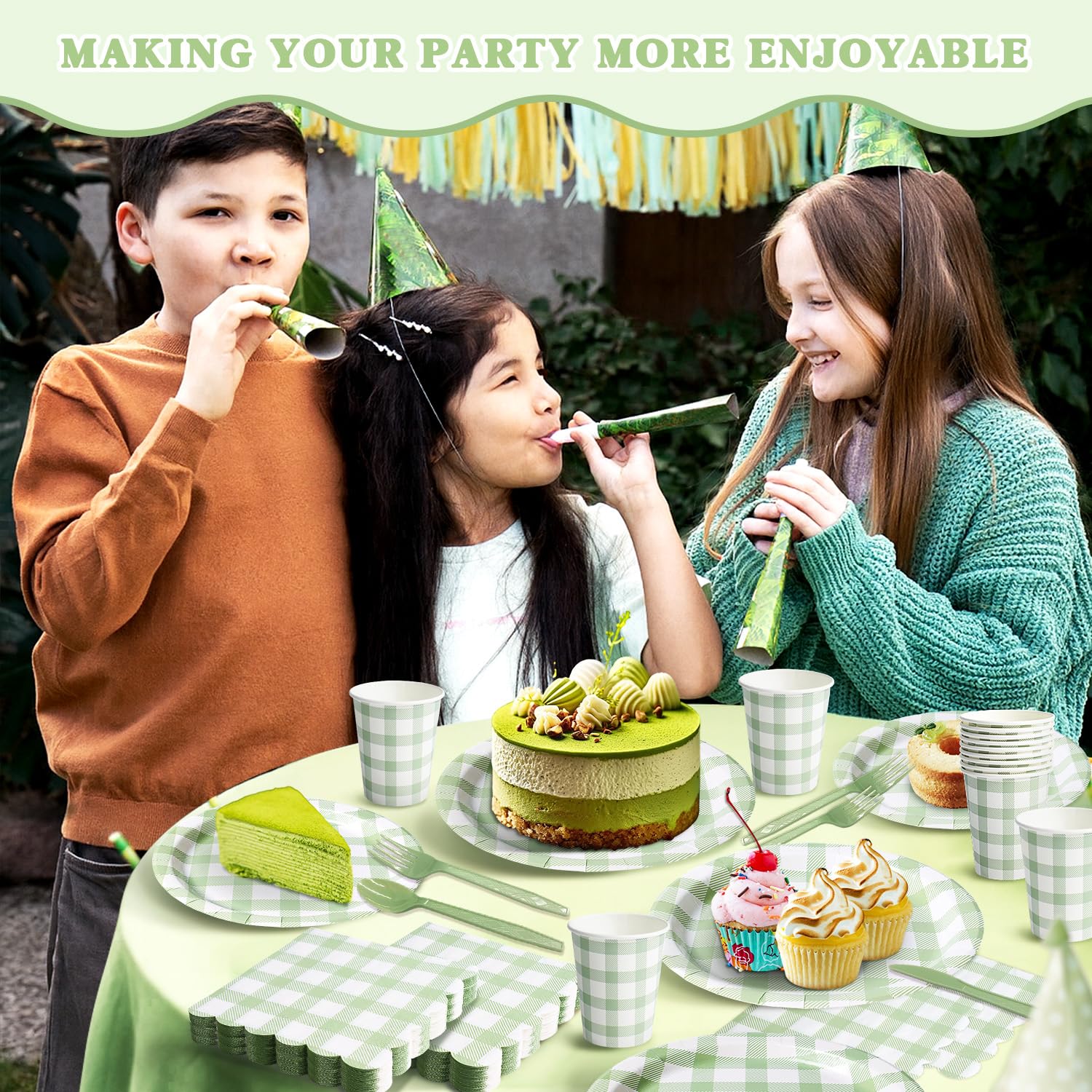 Matching Gingham Print on Plates, Cups & Napkins – Coordinated check design across both plate sizes + cups + napkins for a clean, photo-ready table. Mix with solid-color decor, balloons, centerpieces, and party backdrops.