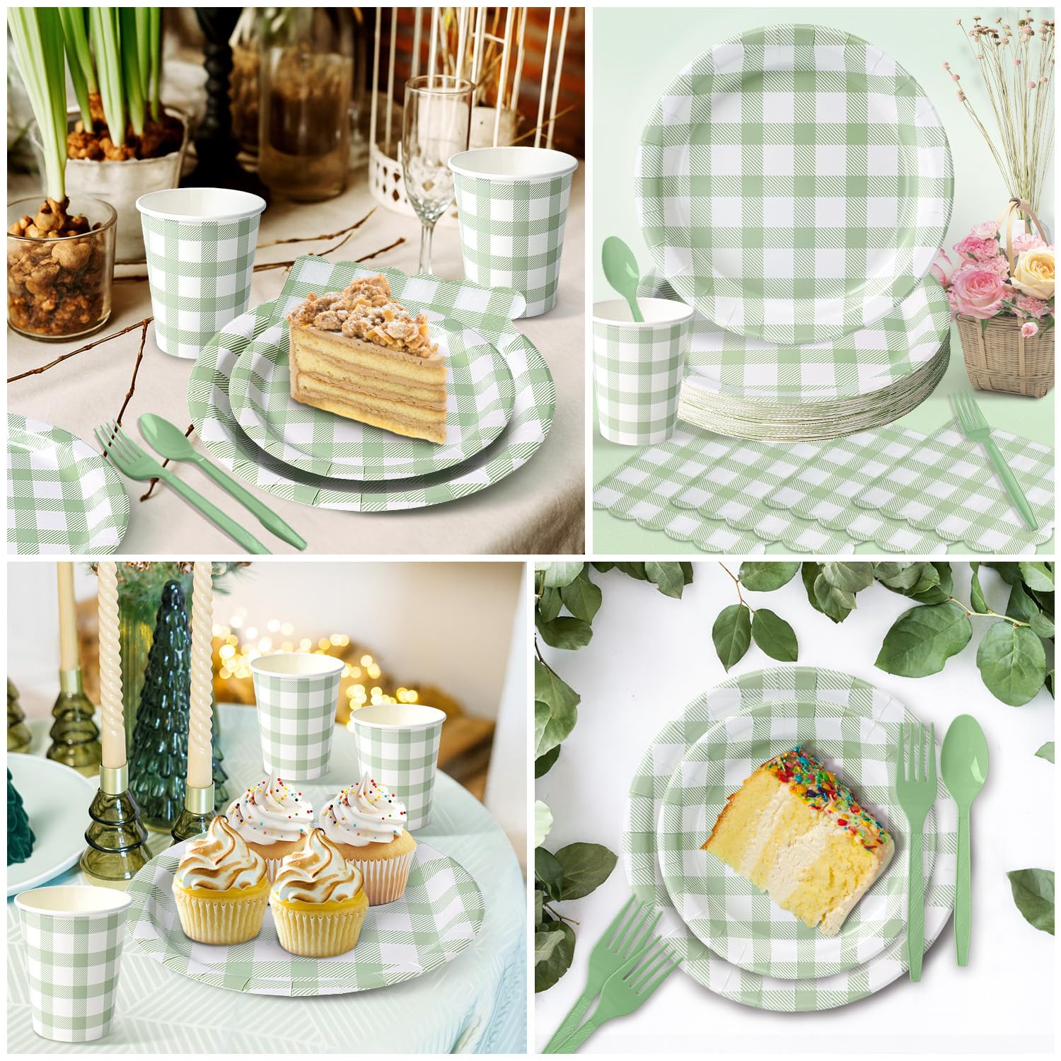 Sage Green Gingham: Great for Boho & Greenery Themes – Perfect for boho baby shower, rustic bridal shower, garden parties, spring brunch, and neutral modern celebrations.