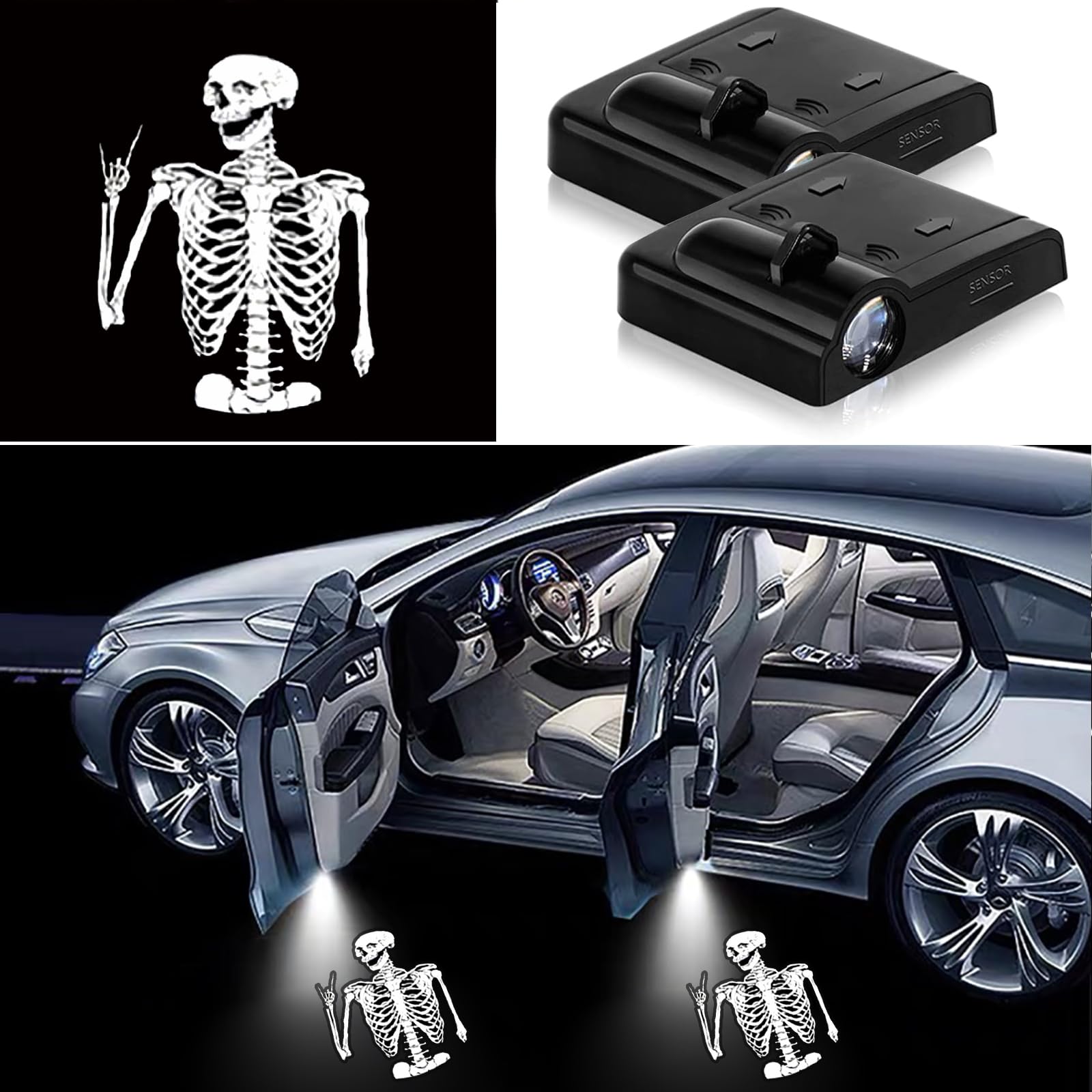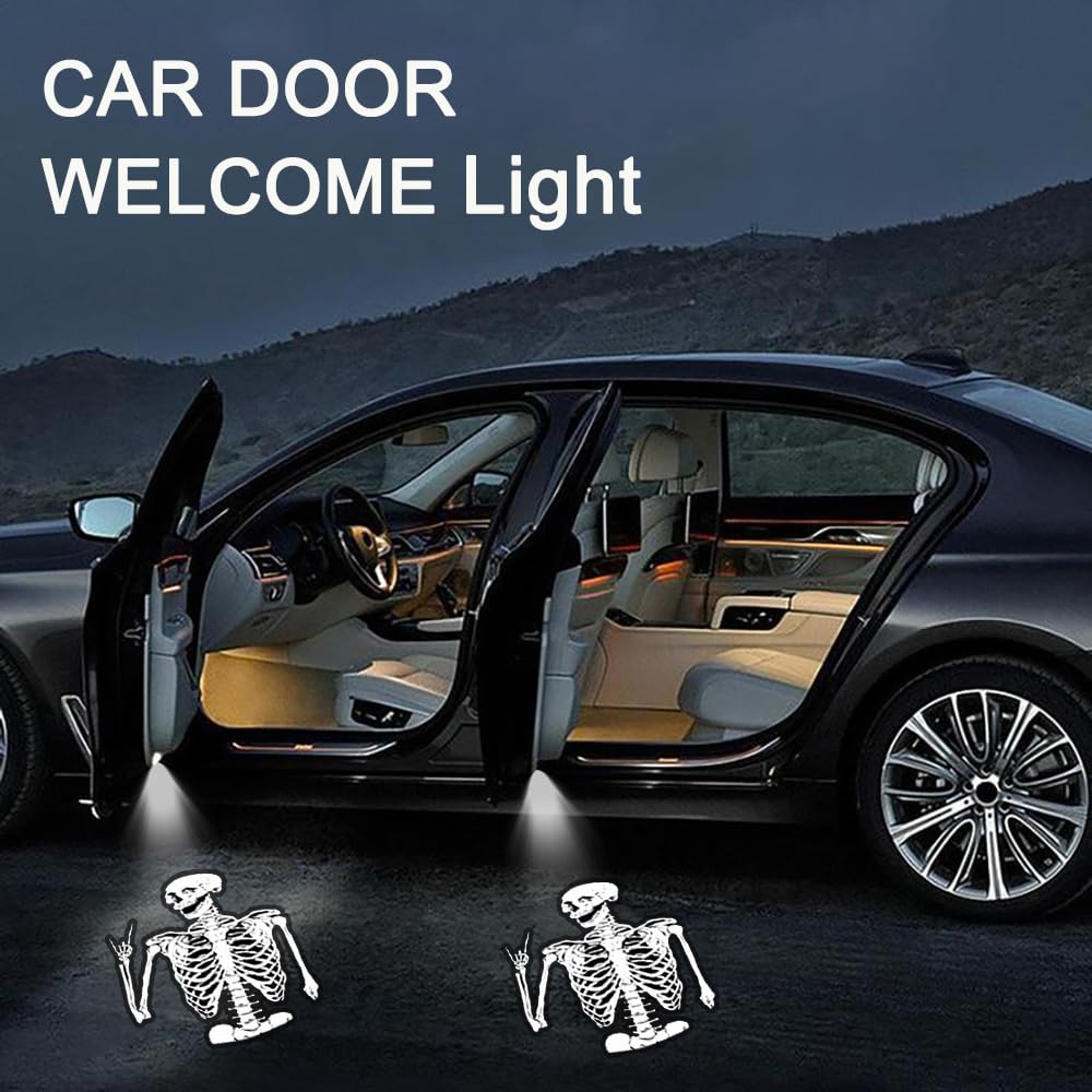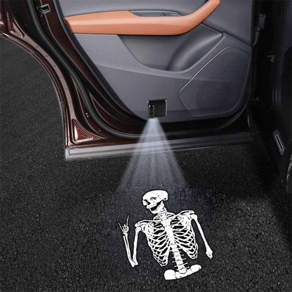Illuminate & Confidence: Light up safety and feel confident. cute Skeleton car decor / Skeleton welcome lamp car door light not only mesmerize with their eye-Skeletonching lighting, but they also enhance your driving confidence. Car puddle light it will illuminate the surroundings to provide greater visibility when entering and exiting the vehicle, providing additional safety. No matter day or night, shadow lights for cars it makes your driving safer and more confident.