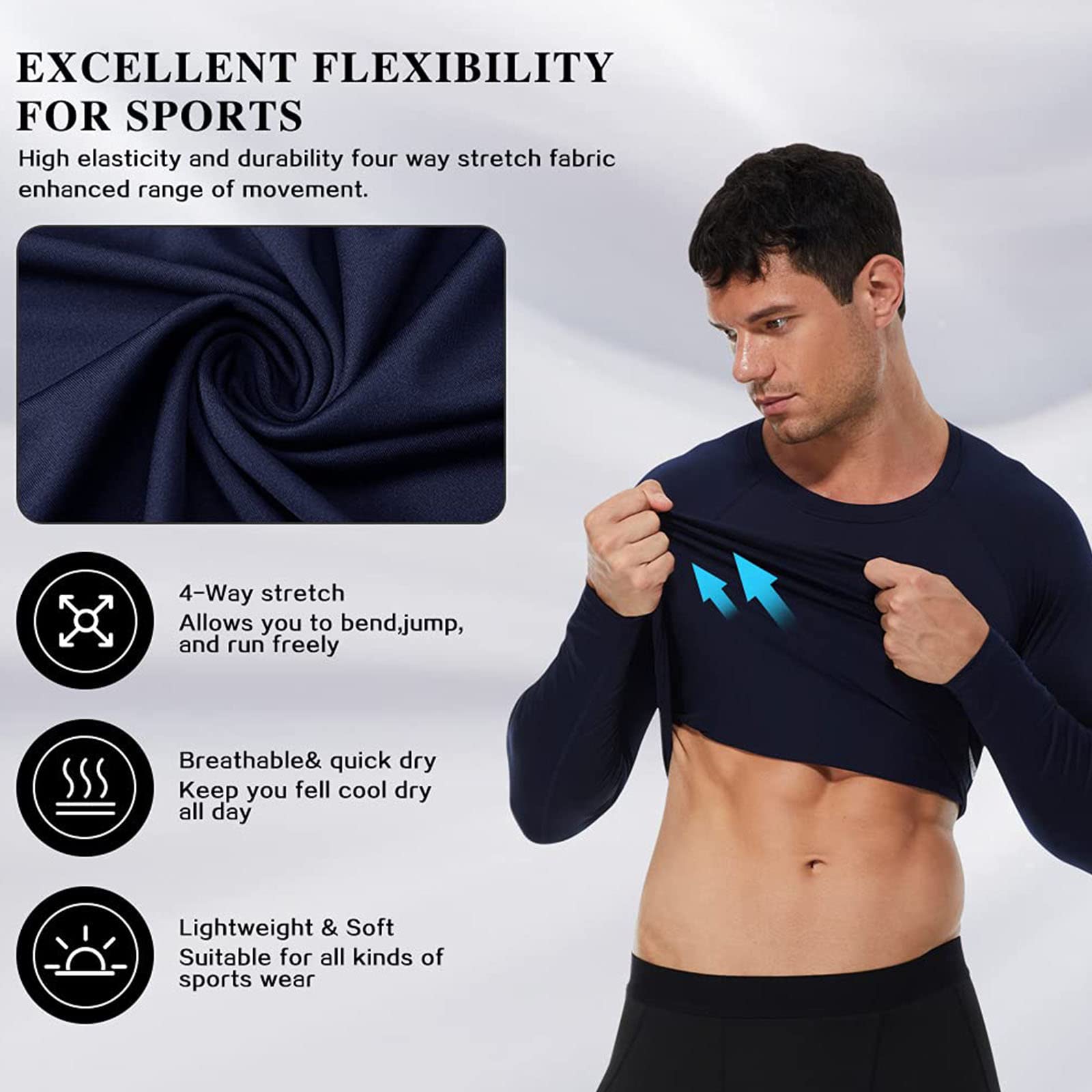 ➤【Dry-Fit Shirts for Men】: Our Long sleeve compression shirt men is made of ultra soft, breathable and sweat-wicking 4-way stretch superior quality fabric, enable sweat easy for air-dry to prevent clothes sticking to the body. Excellent elasticity and durability shirts are great for all day wear.