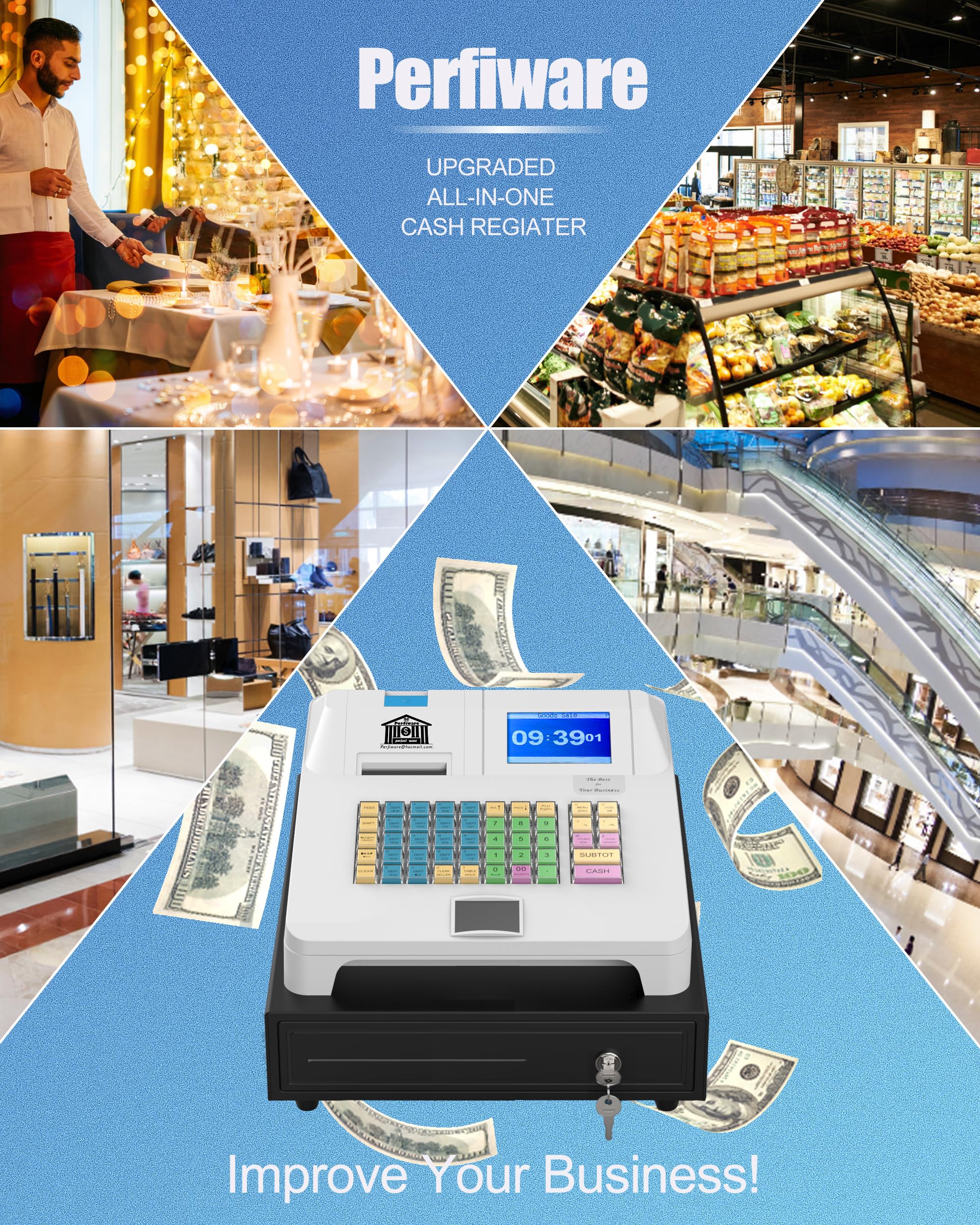 โค๏ธใUser-Friendly and Reliable Supportใ: Designed for ease of use, the Perfiware cash register is simple to set up and operate. Plus, our 24/7 customer support ensures you have assistance whenever you need it.