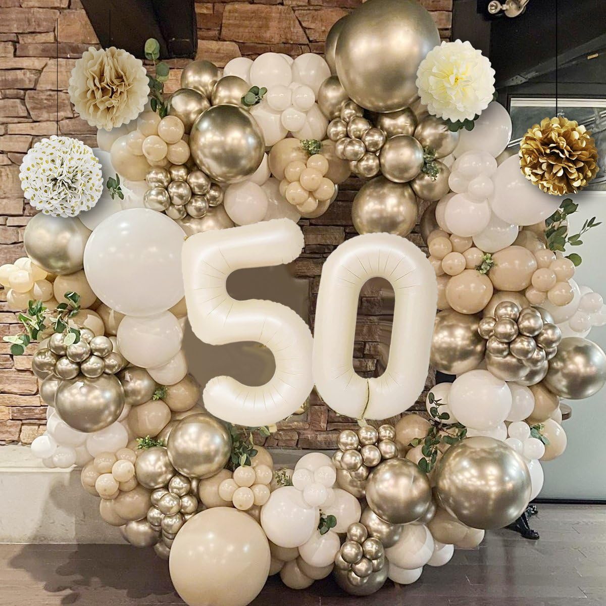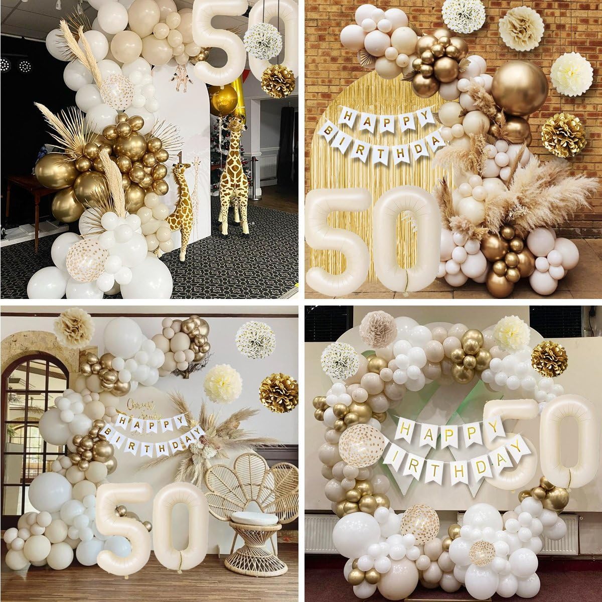 Sand White Gold 50th Birthday Balloons: The white sand gold balloons are made of high-quality latex, strong and durable. It is easy to assemble in a short time, the streamers can be hung on the ceiling, mounted on walls and windows, or used as centerpieces to decorate your birthday party. Create a dreamy and unforgettable white and gold 50 birthday party for men and women