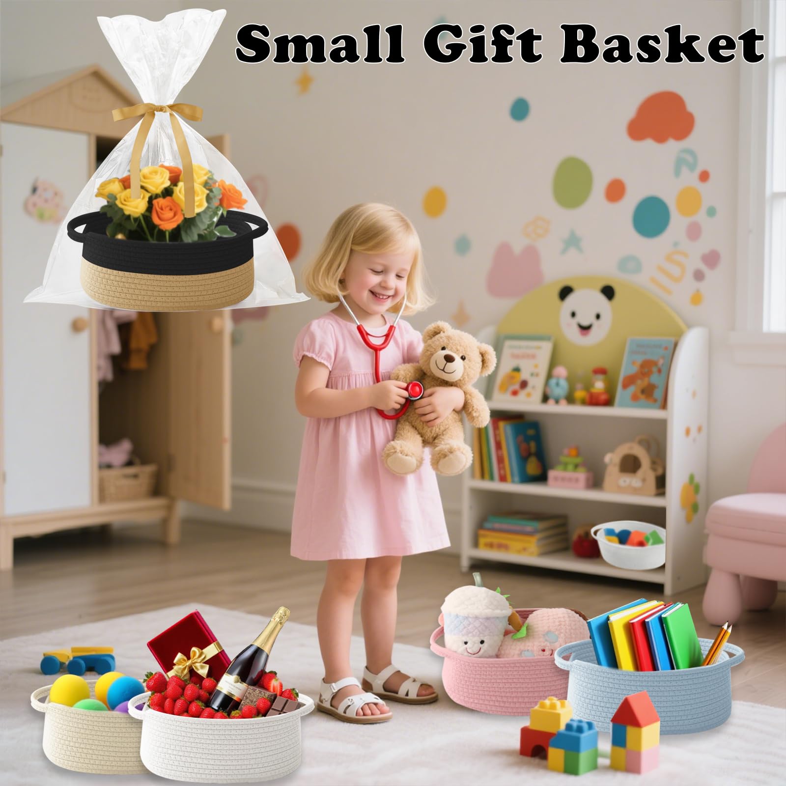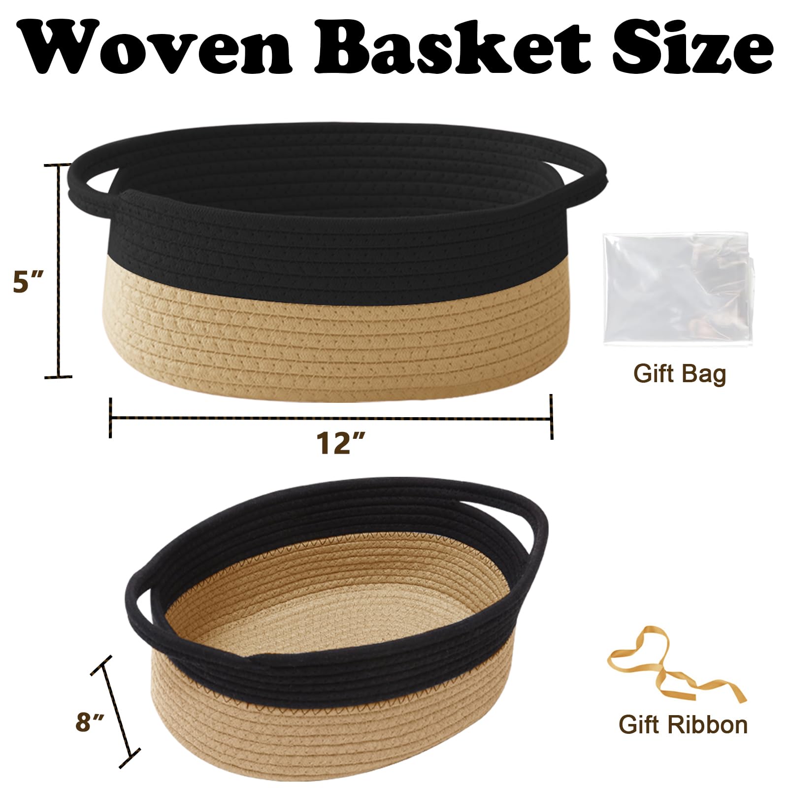 【Small Gift Basket】Handcrafted for Strength, Stability and Beauty.Storage basket measures 12" L x 8" W x 5" H, Use it to organize small items, The basket itself is also a great gift
