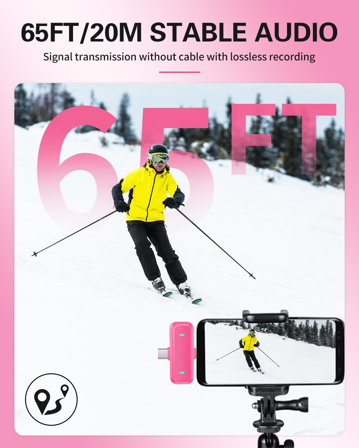 【Long-distance Audio Transmission】-This little microphone provides a transmission distance of 65 feet (about 19 meters) via the 2.4 GHz band, and its compact design can be clipped on a shirt or put into a pocket. Free your hands for long-distance recording.
