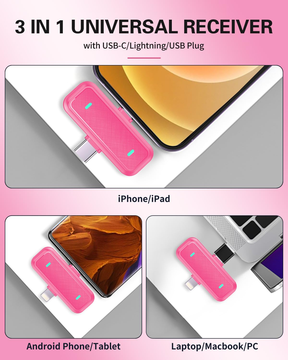 【Seamless Connection】- This wireless mini microphone comes with a 2-in-1 receiver, compatible with iOS and Android systems. This Bluetooth lavalier microphone is compatible with all iPhone and iPad series, including iPhone 14 and below, as well as the latest iPhone 15,16,17 series and iPad series equipped with Type C interface. In addition, it is also compatible with laptops and tablets.