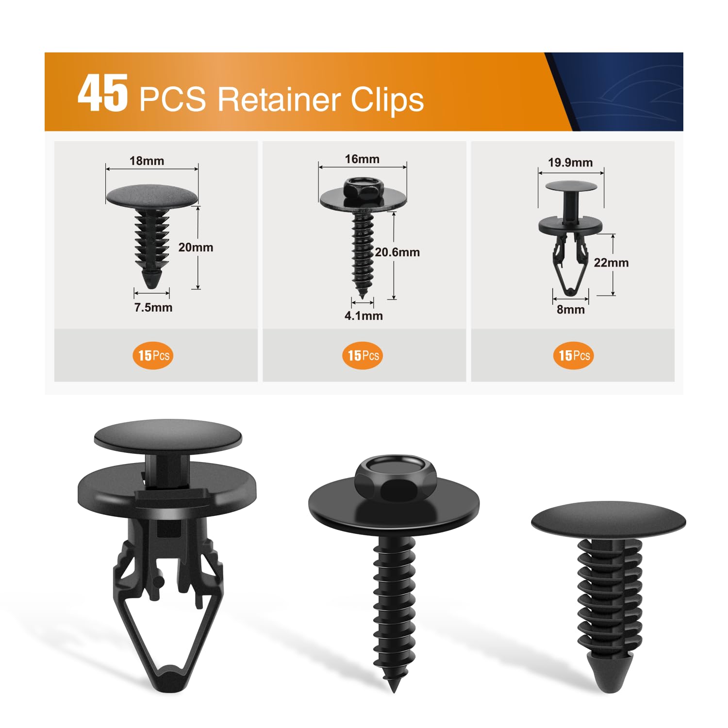 【Application】 - Widely used for door trim, fender, bumper, radiator shield yoke, side skirt, grille, engine cover and splash shield retainers