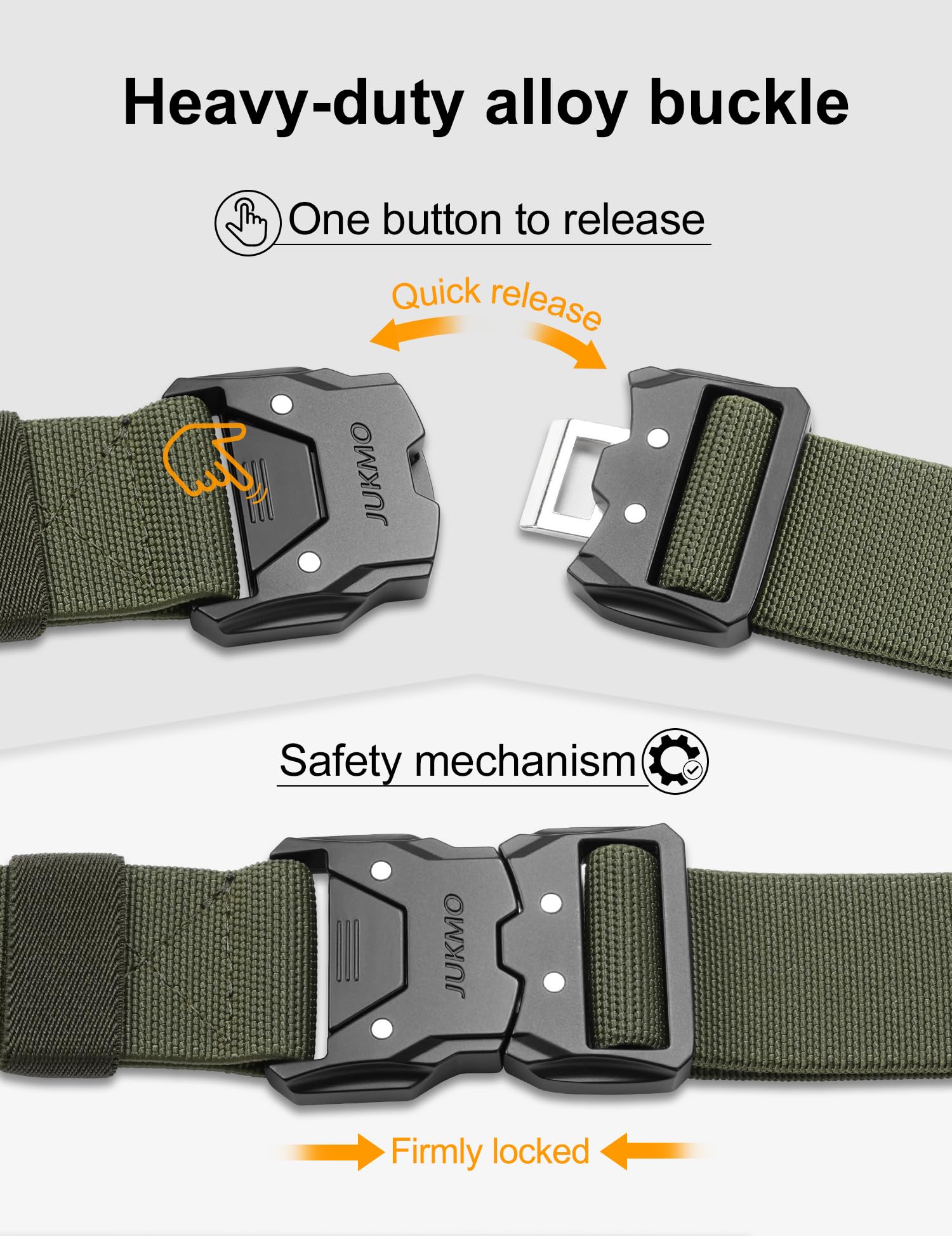 ONE BUTTON QUICK RELEASE BUCKLE:The crafted heavy-duty buckle is made of zinc alloy. As long as you push the button on the buckle, the buckle would release instantly. It is super convenient to release your pants for doing whatever you want to do. You would never meet a belt so quick convenient like this. The designed buckle has very strong load-bearing capacity, which can meet your different wearing requirements