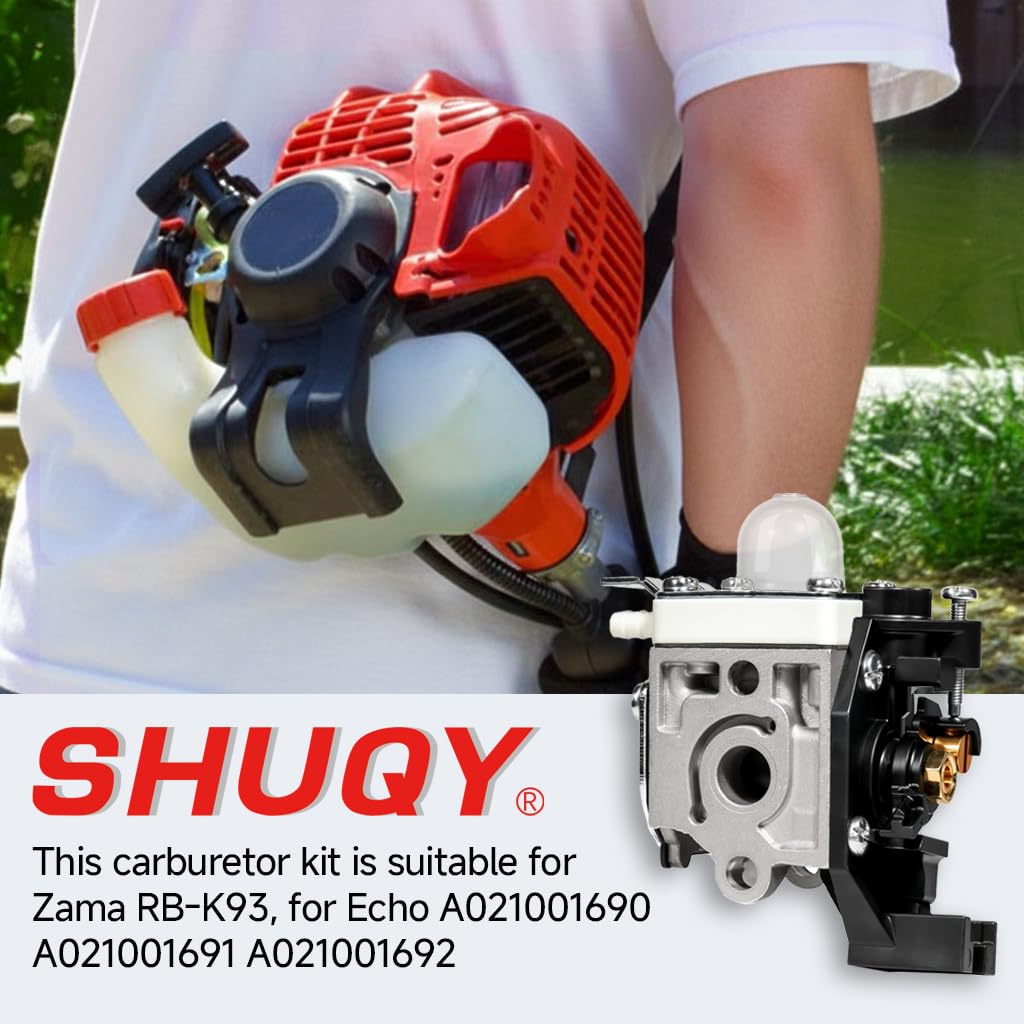 SRM-225 carburetor replaces Zama RB-K93 and Echo part numbers A021001690, A021001691, A021001692; SRM-225 air cleaner case replaces Echo P021012870; SRM-225 air filter cover replaces Echo P021012870 (with air filter base A232001850); an ideal replacement parts set for Echo SRM-225 weed eater.