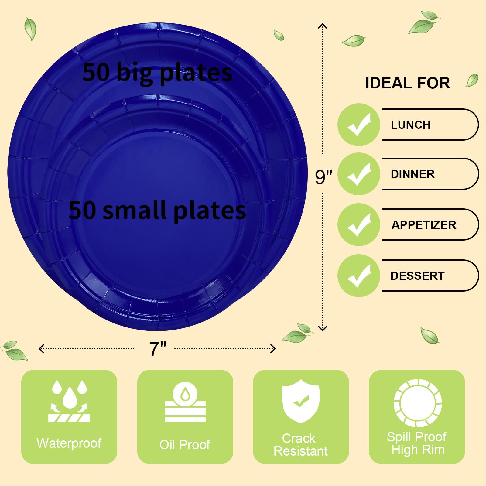 What's Included: Paper plates set includes 50- 7" dessert plates and 50- 9" large party plates.