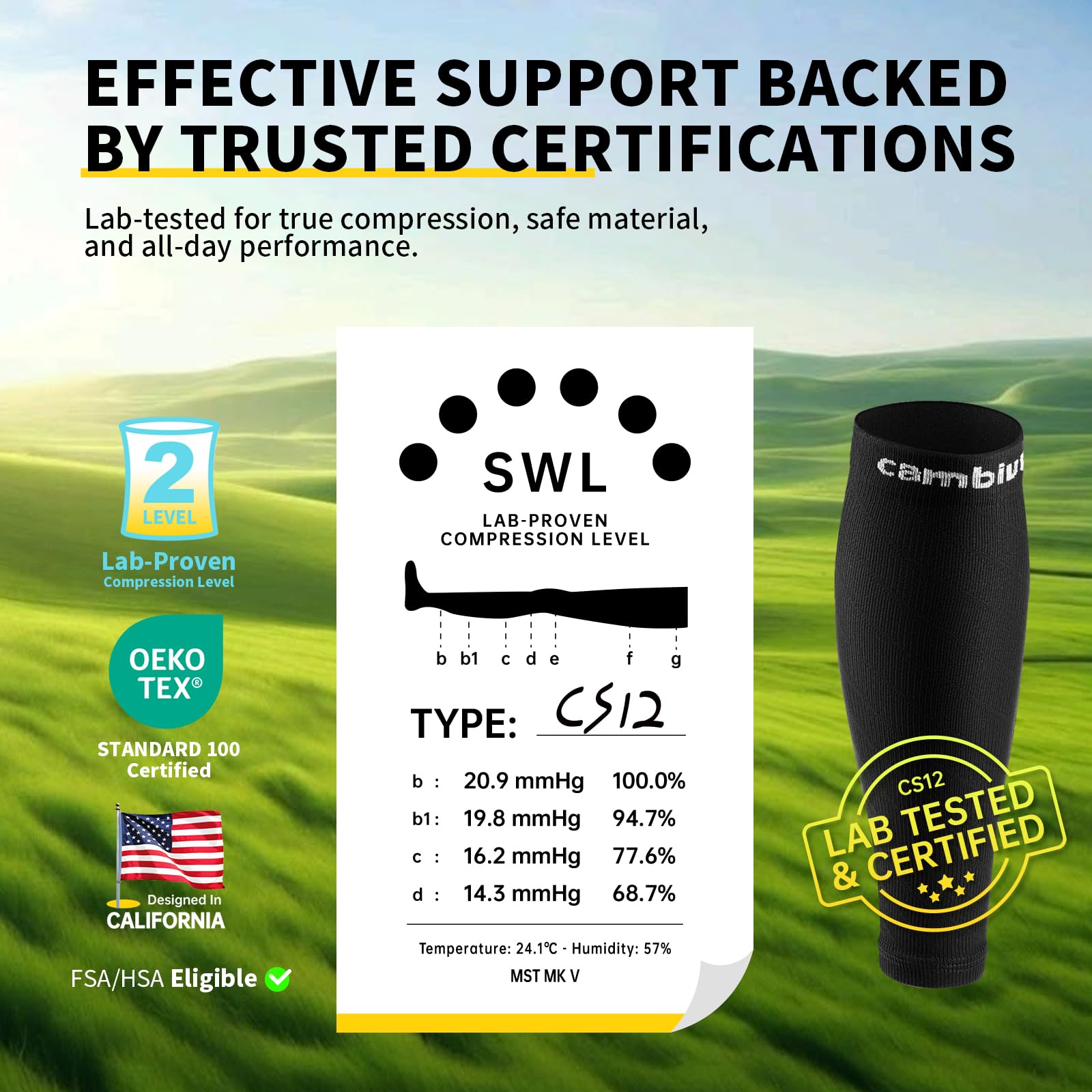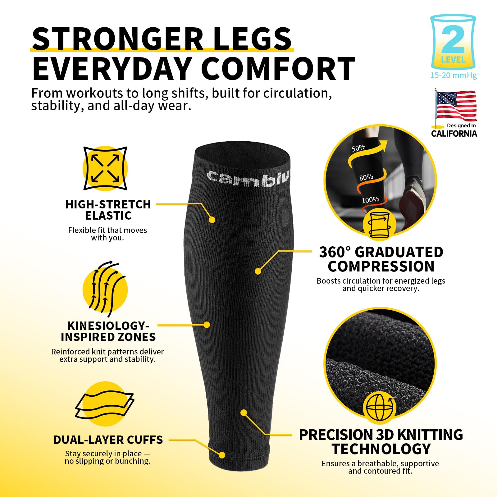Breathable Fabric for All-Day Comfort - Utilizing 3D knitting technology, compression calf sleeve has excellent durability and breathability; moisture-wicking leg brace keeps your calves dry and eliminates annoying blisters and odor; double-layered cuffs ensure the sleeves stay in place as running accessories during activities; features a kinesiology strip design for added support