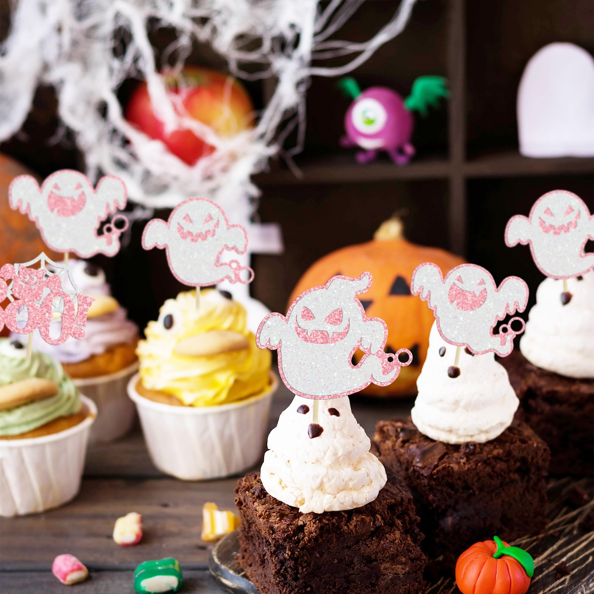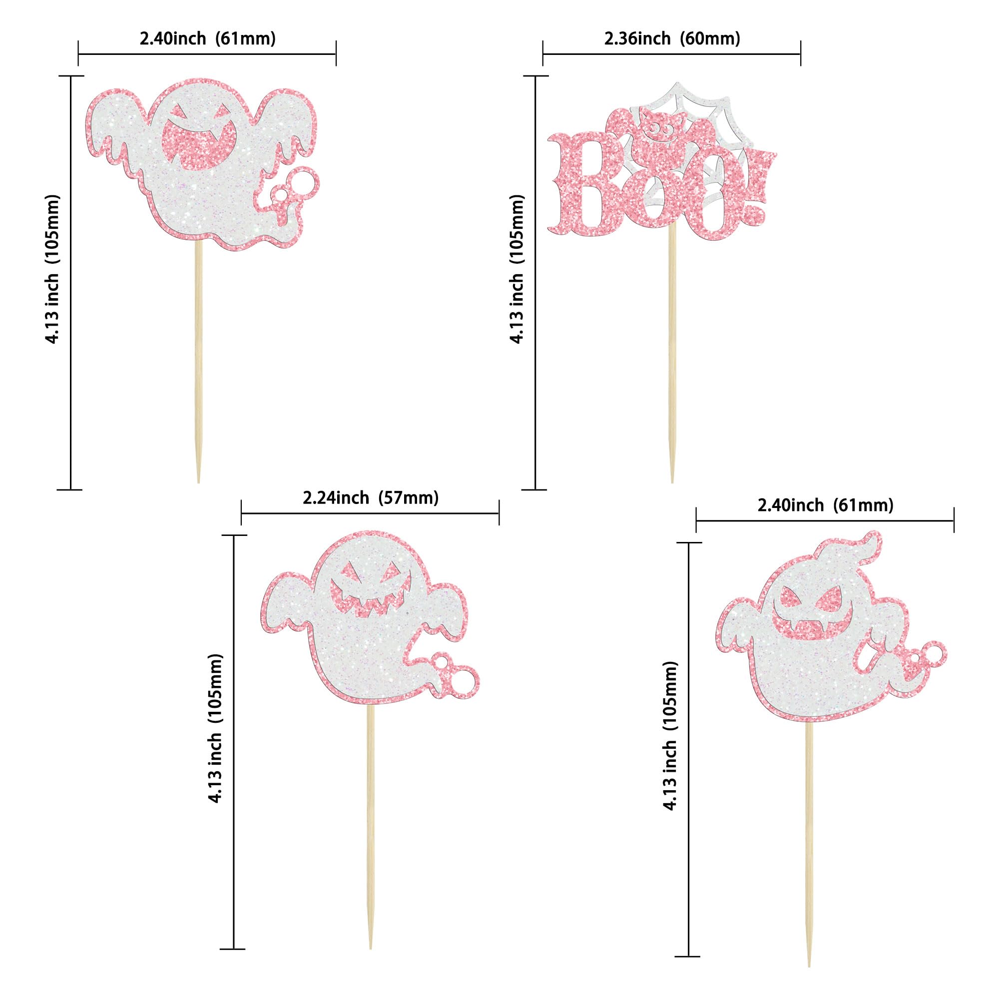 Upgrade Quality: 24Pcs Ghost Cupcake Toppers are made of 300 gram glitter card stock and 100% food grade bamboo stick, not easy to deform and fade, smooth edges without burrs, makes these Pink Ghost Cupcake Toppers give you a wonderful visual enjoyment. It is durable enough for long lasting use.