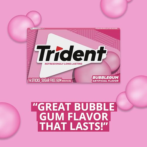 Trident Bubblegum Sugar Free Gum is a fun and delicious way to freshen breath and protect your teeth. Can something be classic and fresh at the same time? Yes. Yes it can. With 30% fewer calories than sugared gum, Trident sugar free bubble gum is sweetened with xylitol, a naturally occurring sugar alcohol. The ADA Council on Scientific Affairs found that the physical of chewing Trident sugarless gum for 20 minutes after eating stimulates saliva flow which helps to prevent cavities by reducing plaque acids and strengthening teeth. Each pack of gum is designed so the gum stays inside, making it easy to toss in your car, backpack or desk drawer. These sticks of bubble gum are individually wrapped for freshness.