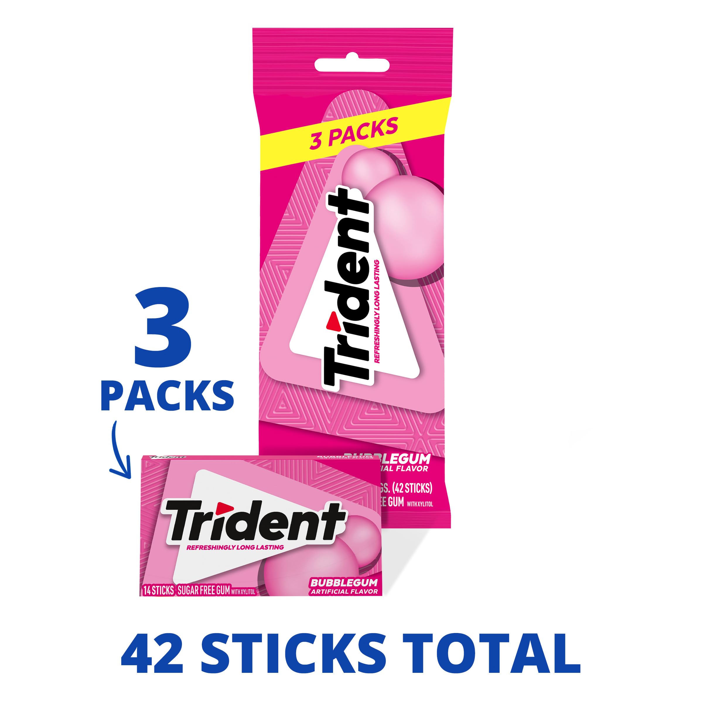 3 packs of Trident Bubblegum Flavor Sugar Free Gum (42 pieces total) (packaging may vary)
