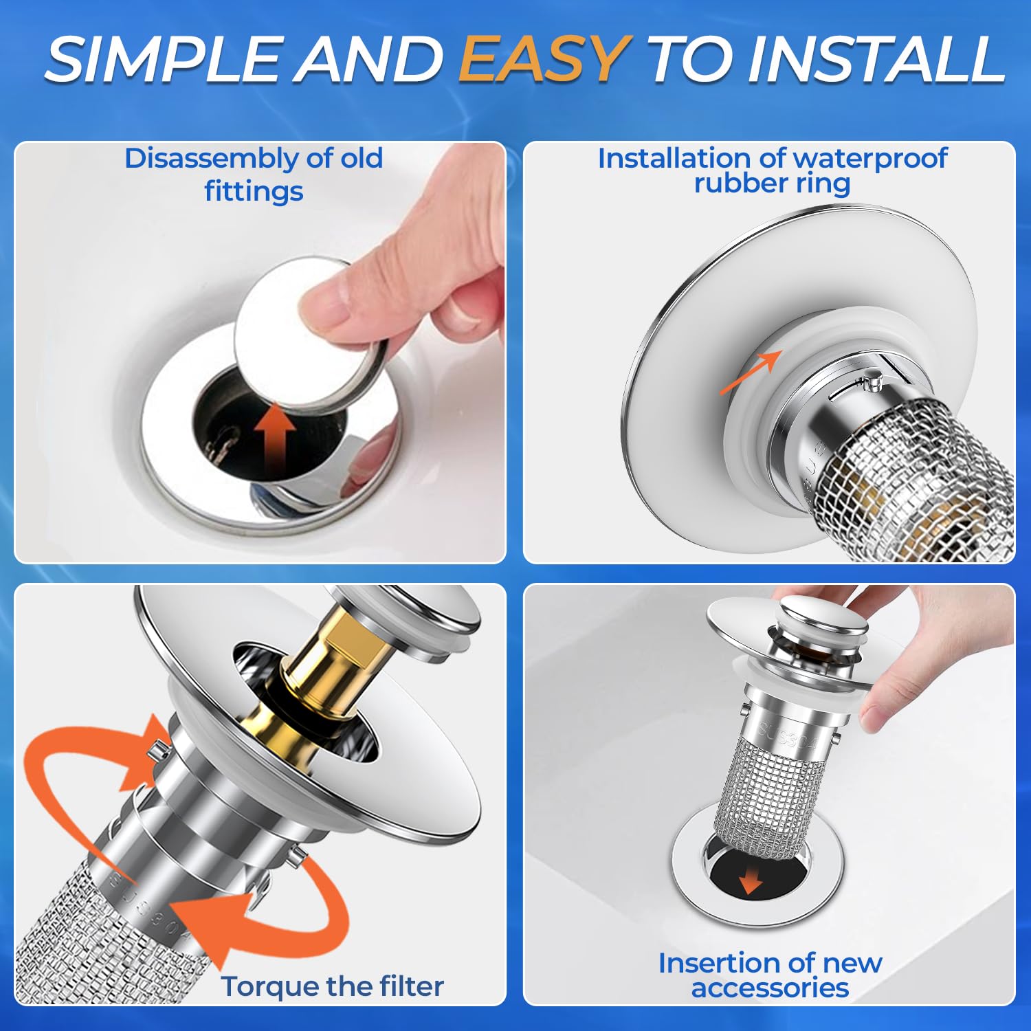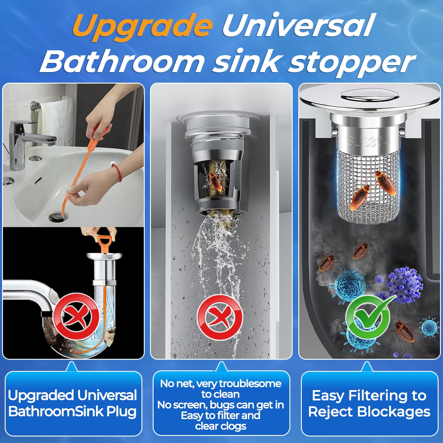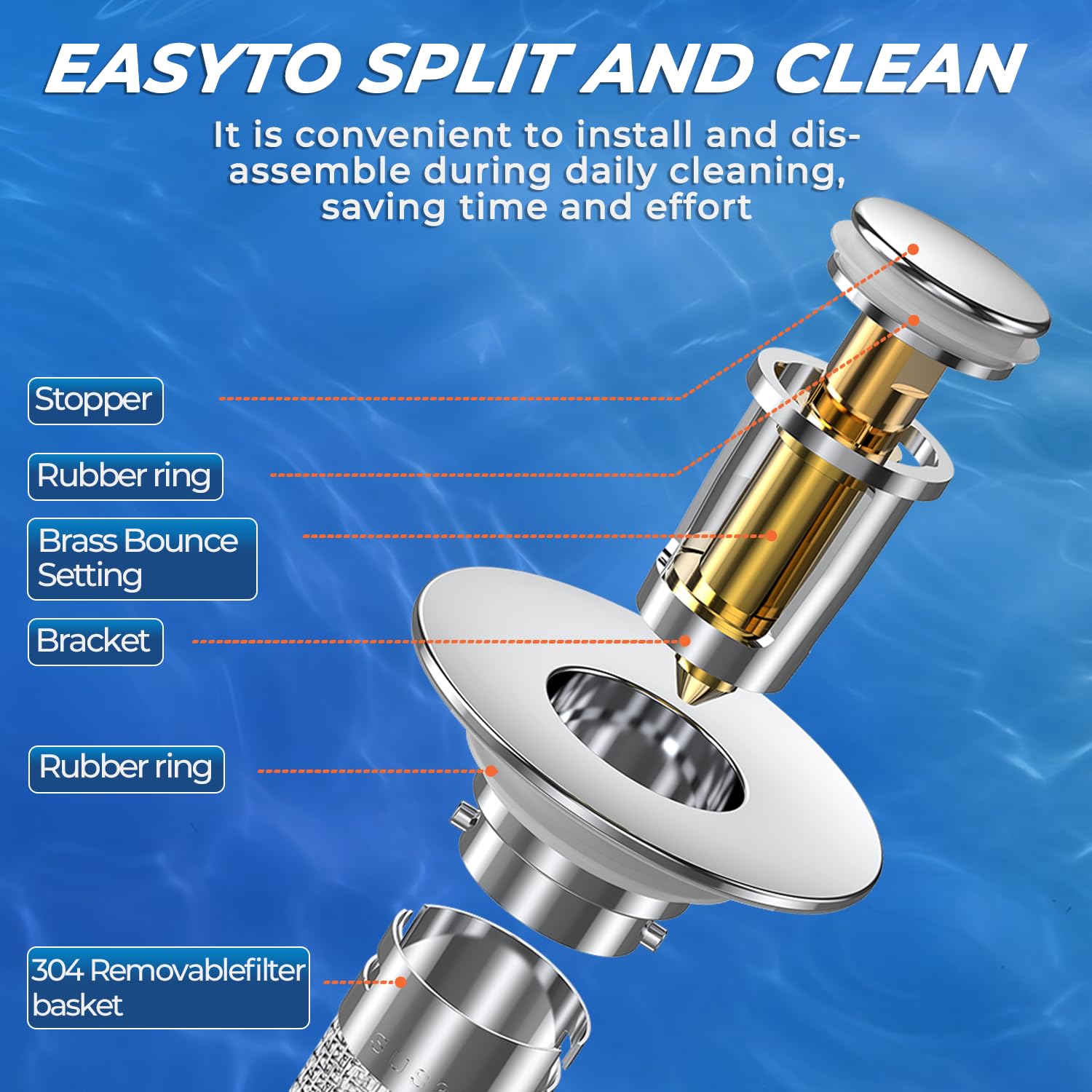 š„ ć2-in-1 Innovative Design ćOur sink bounce core drain strainer features an advanced 2-in-1 design that seamlessly integrates an anti-clogging basket. It combines clogging and filtration to effectively intercept hair and debris, prevent clogging, and ensure smooth drainage. With this smart design, you will experience hassle-free maintenance and an always clog-free sink
