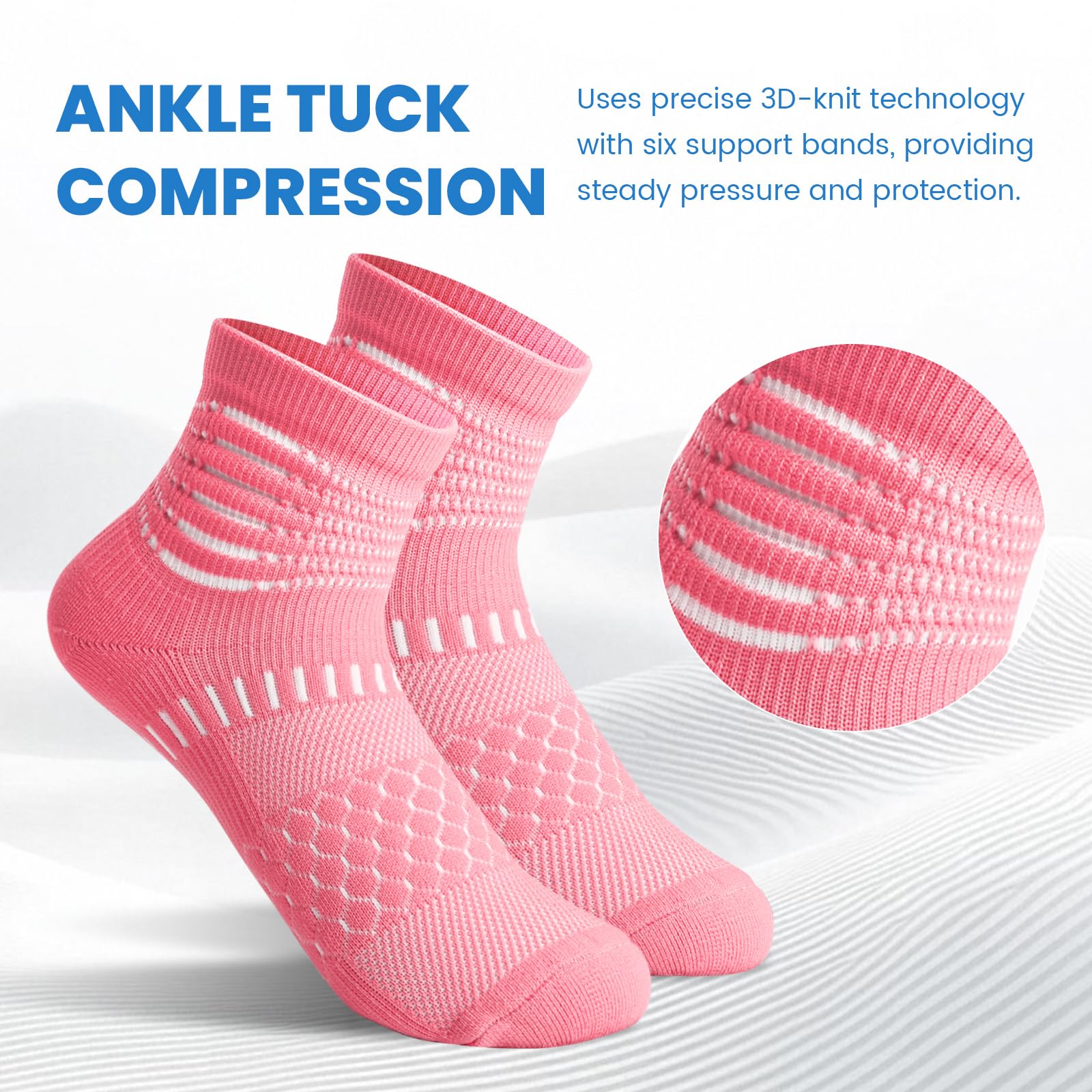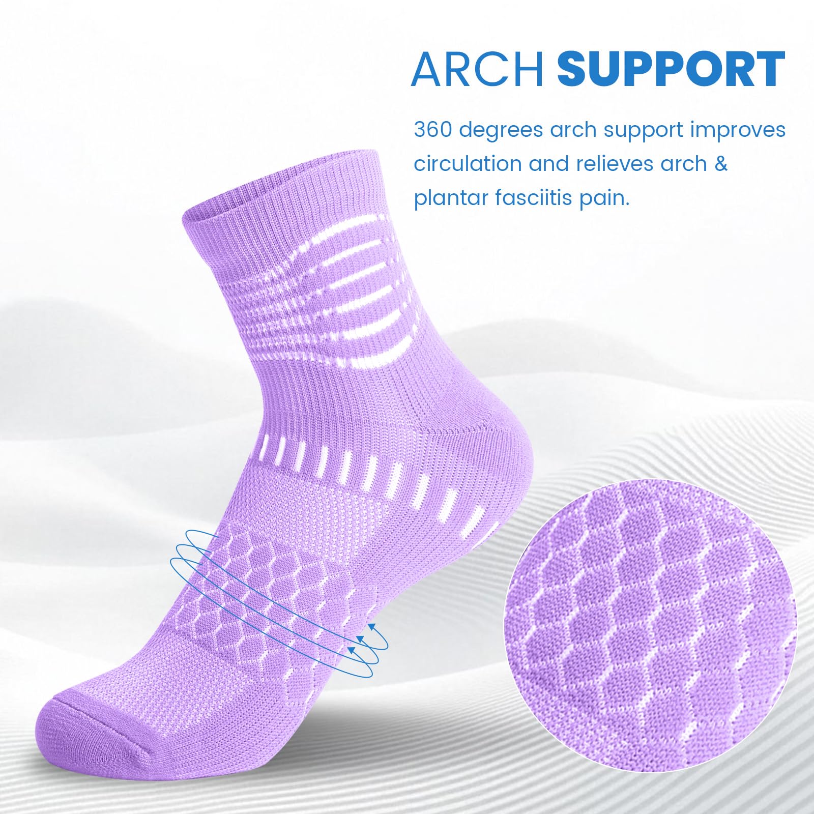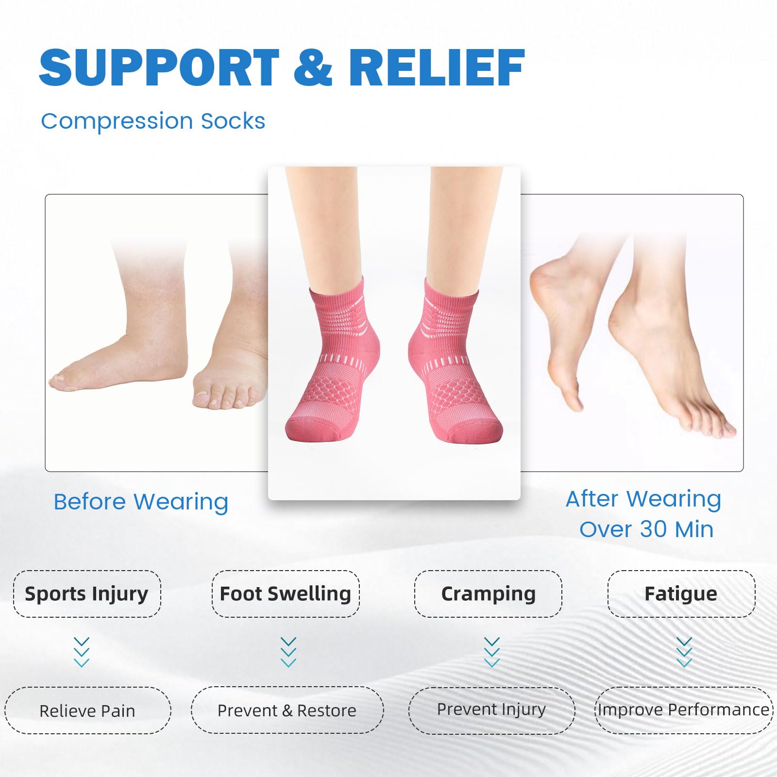 Stay Supported Stay Active – 6 ankle compression rings and reinforced arch support keeps you stable. Whether you're running working or recovering these socks help fight foot fatigue and plantar fasciitis pain.
