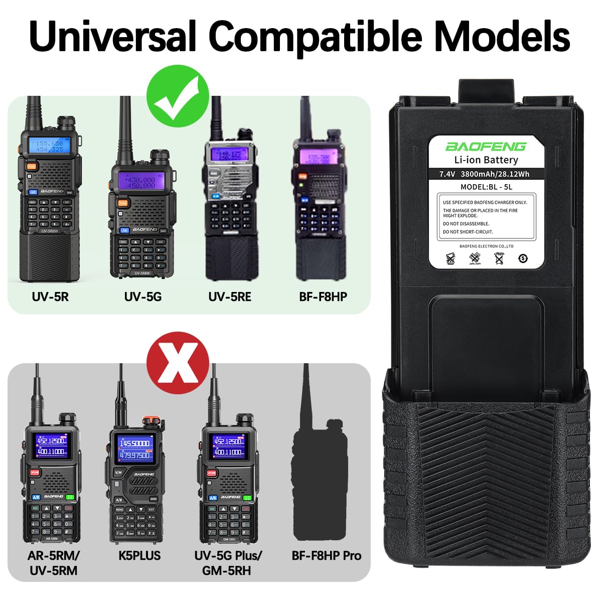 Multifunctional Use: Compatible with Baofeng UV-5R BF-8HP UV-5RX3 RD-5R UV-5RTP UV-5R MK2 MK3X MK5 PLUS Series Radios.Note: Not compatible with 5RM series (UV-5RM AR-5RM UV-5RH) and UV-5G Plus GM-5RH K5PLUS
