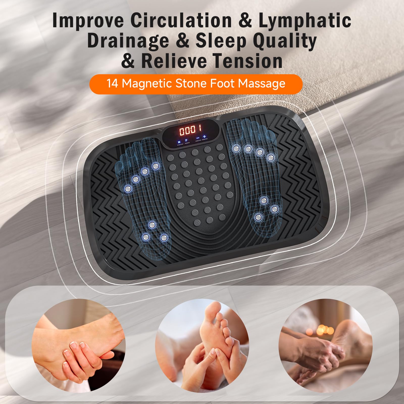 Deep Recovery and Relief: The vibration plate for lymphatic drainage provides gentle yet powerful full-body vibrations, awakening dormant muscles, improving lymphatic drainage, effectively reducing muscle swelling, and promoting blood circulation and cell regeneration. It effectively relieves chronic pain, relaxes stiff joints, accelerates the repair of old injuries, enhances flexibility and muscle tone, promotes metabolism, increases bone density, and reduces stress levels.