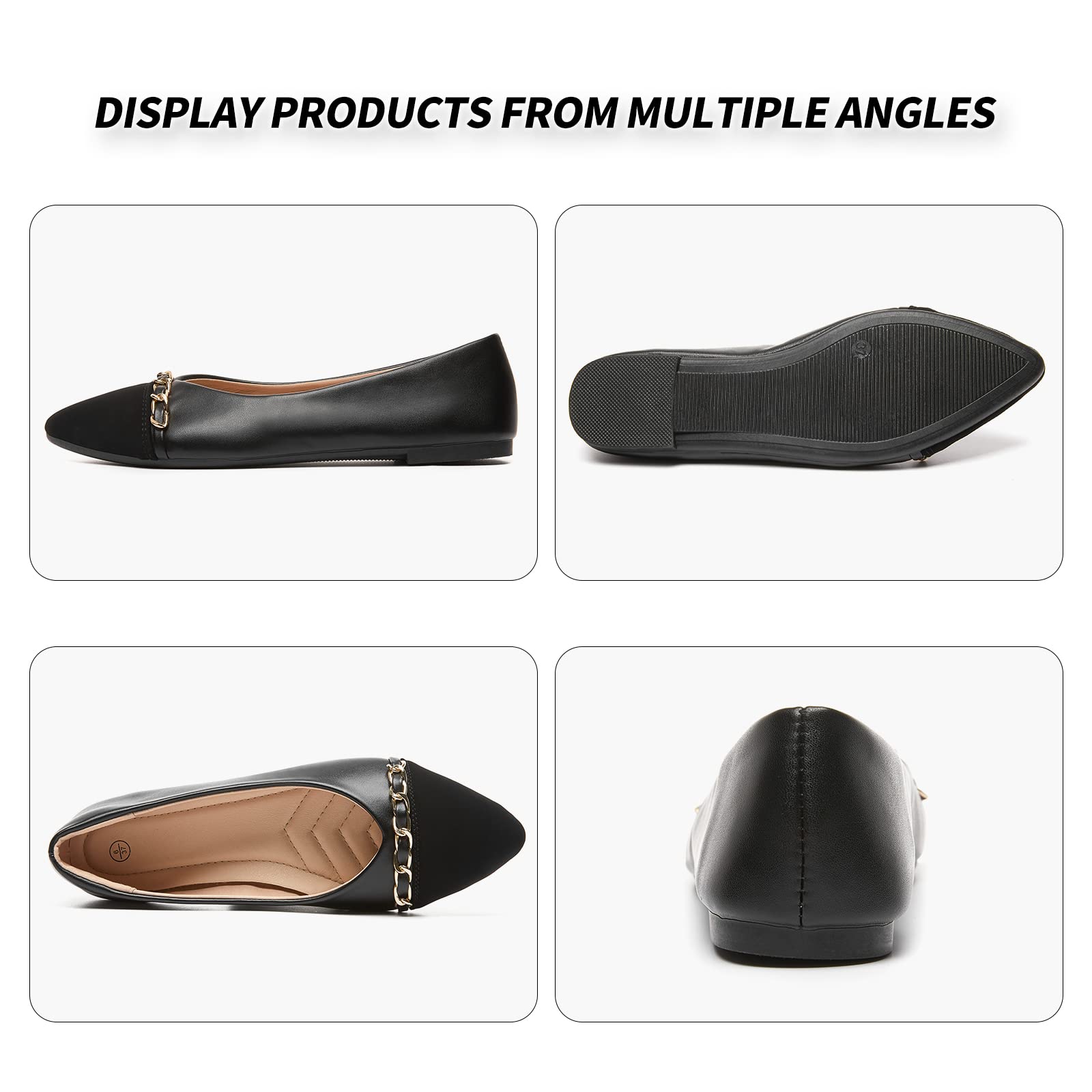 Memory Foam Insole and Lightweight Outsole,The footbed feels comfortable and soft with memory foam.And the black flats shoes are pvc outsoles,features lightweight and soft.Makes every step in the flats shoes easy, comfortable and boasts traction to Keep you stable on your feet.