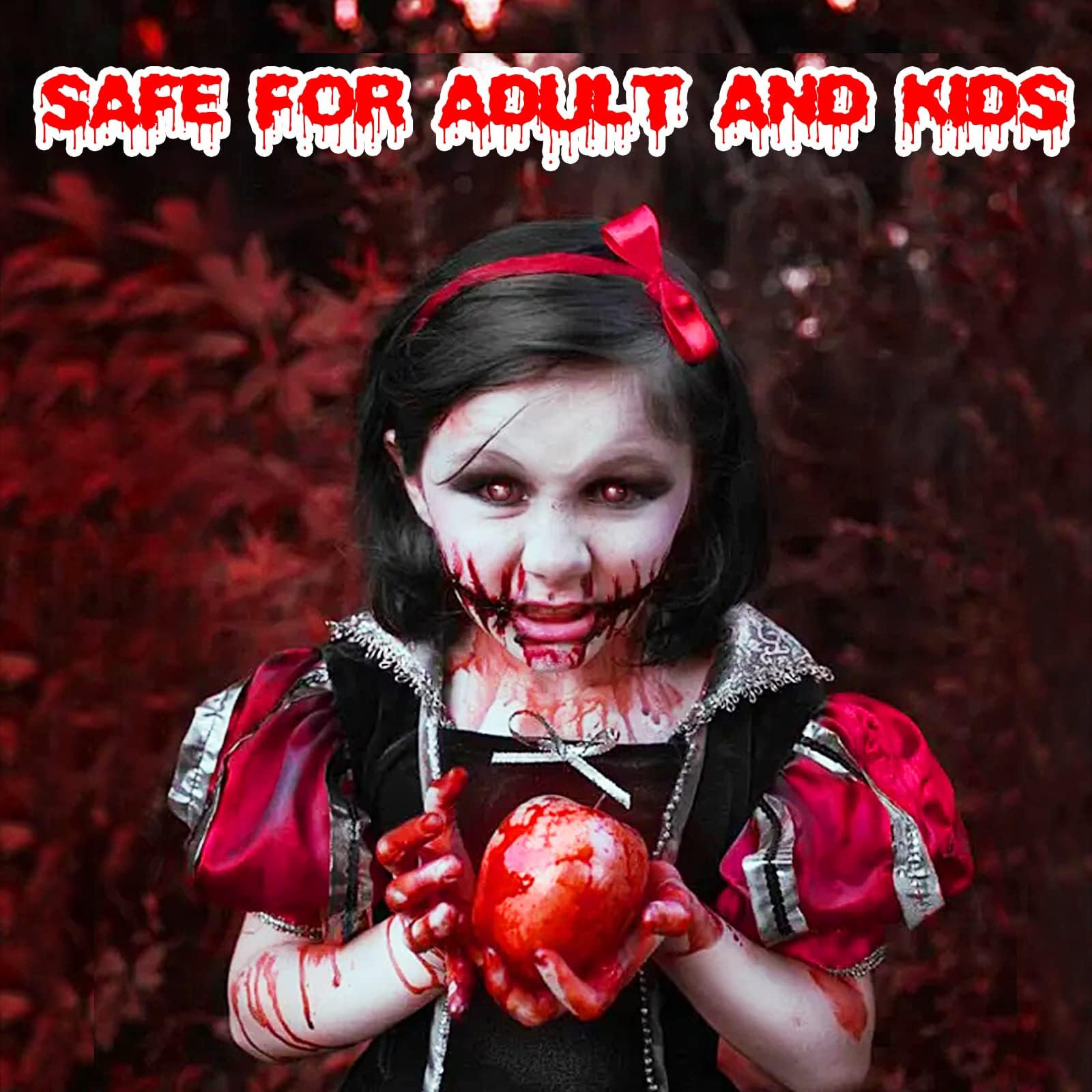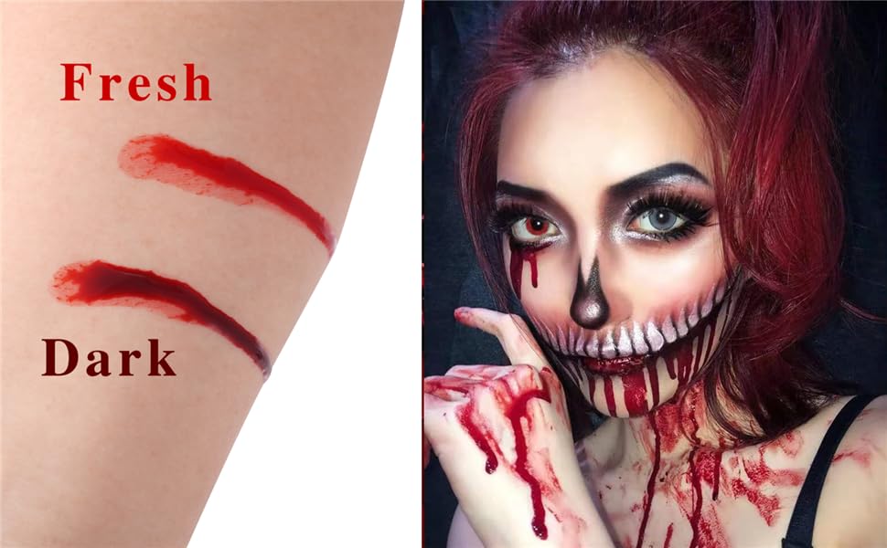 【Realistic effects Dripping Fake Blood】The texture and color of the drip blood bottle are specially designed to simulate realistic blood effects with a vivid and viscous appearance. This makes it an ideal choice for creating terrifying, thrilling, or attention-grabbing character makeup effects.d adult face body makeup,dark color