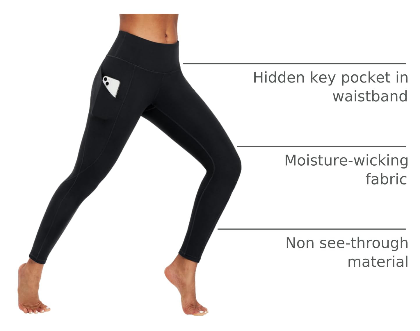Leggings With Pockets For Women - Stop worrying about where to put your phone in a workout. These yoga pants feature 2 side pockets, which easily store your phone or other essentials. We've added a hidden key pocket to the waistband as well, so you can stay on the go without missing a beat.