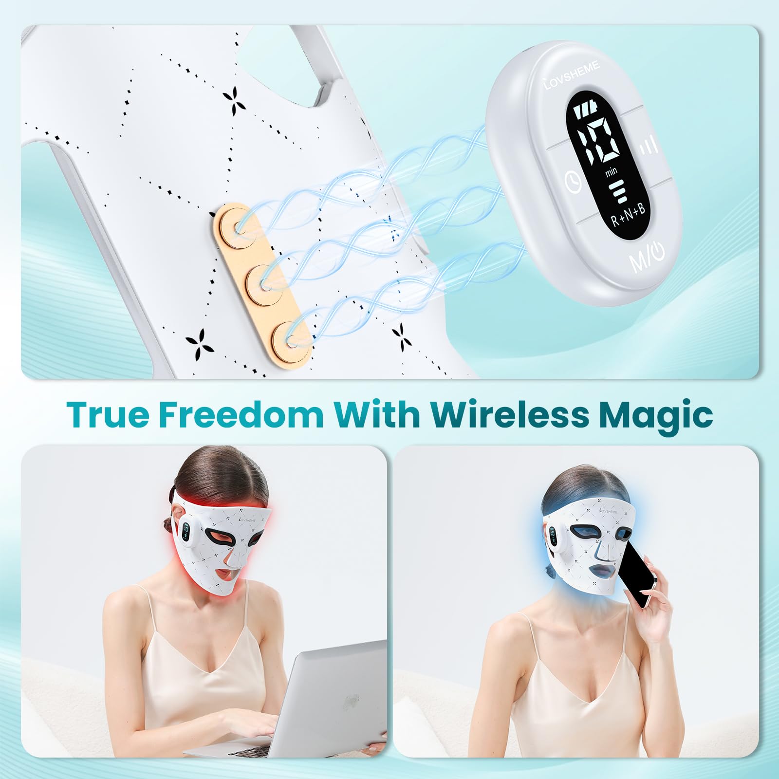 【3 Professional Light Modes for Targeted Skin Solutions】Transform your skincare routine with Lovsheme LED face mask light therapy! Experience the power of 3 specialized light modes, Red Light: Targets wrinkles and boosts collagen, revealing smoother, youthful skin. Blue Light: Battles acne and controls oil production, keeping your complexion clear.Red+Blue Combo: Unleashes dual-action benefits for potent anti-aging and blemish-clearing results.Achieve glowing, healthy skin effortlessly—wherever you are!