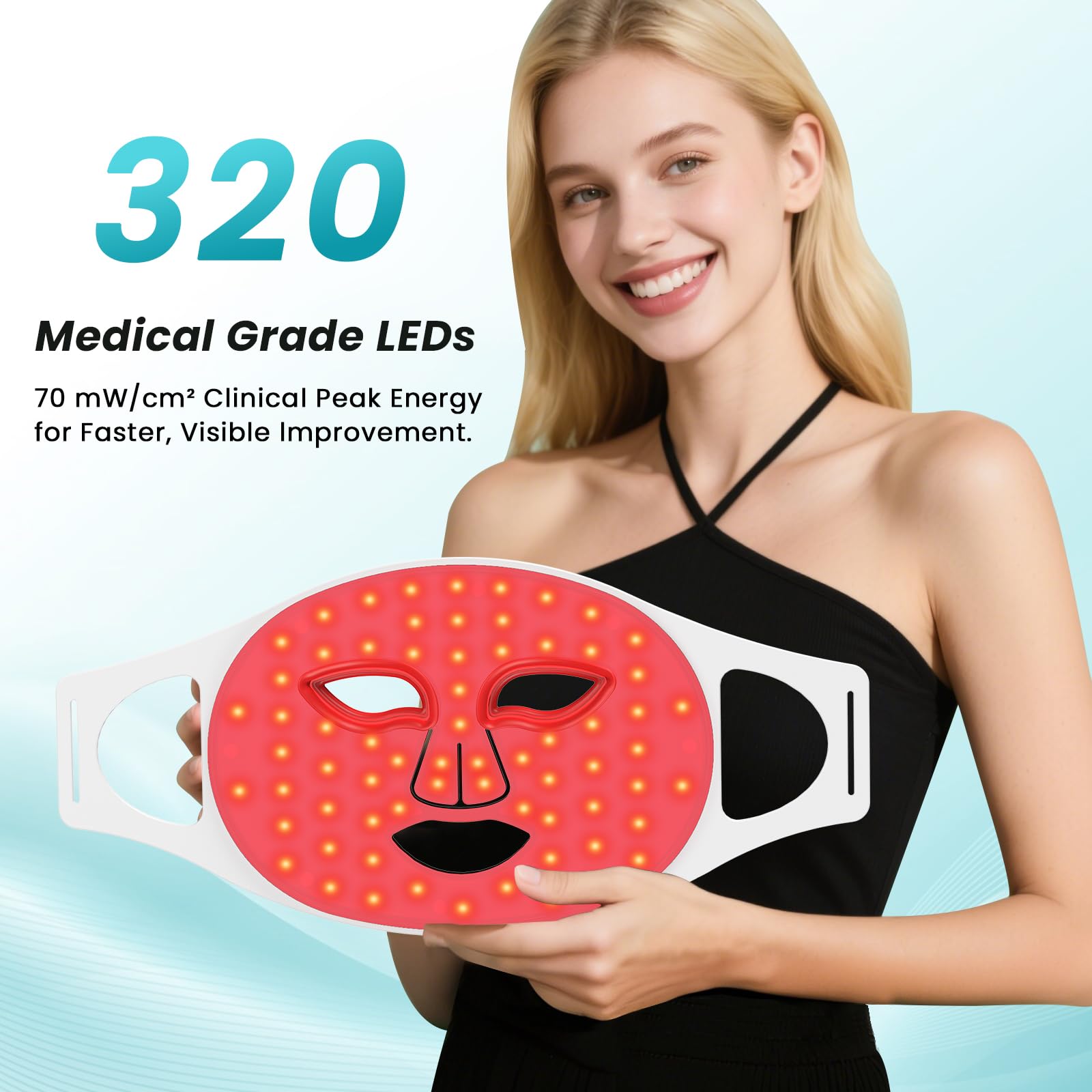 【320 High-Precision LEDs for Ultimate Coverage】Discover the power of precision lighting! Our advanced LED face light therapy mask features 320 strategically placed, medical-grade LEDs designed to deliver complete facial coverage—down to the tiniest details like the tricky nasal folds. With a remarkable 98% skin absorption rate, this technology ensures maximum effectiveness for glowing, rejuvenated skin.