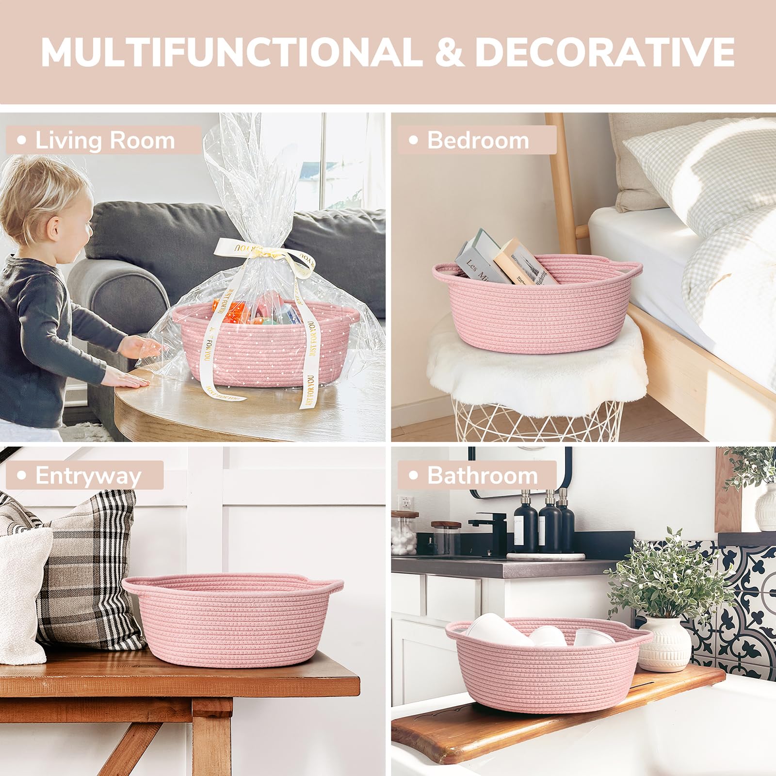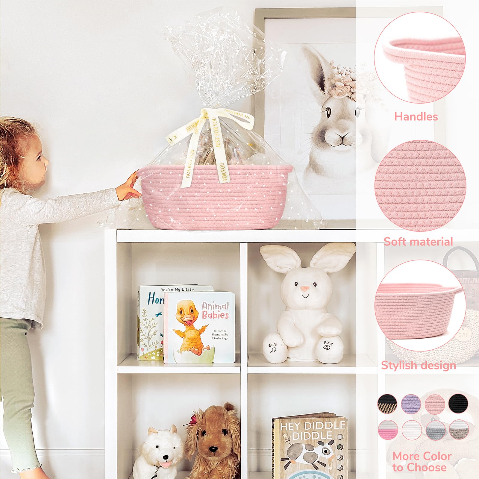 Baby Gift Baskets - Material: rope/woven - Color: Baby Pink - Size: 12 x 8 x 5 inches